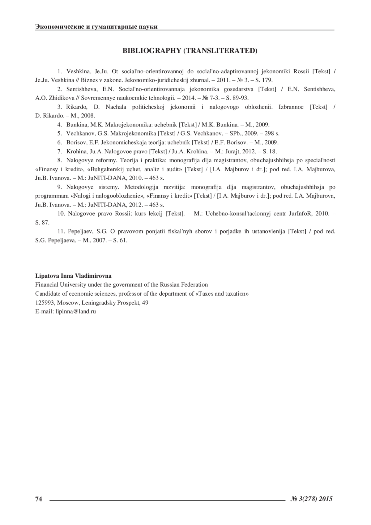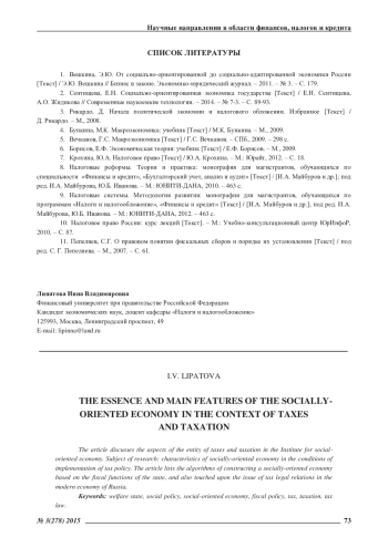 1. Вешкина, Э.Ю. От социально-ориентированной до социально-адаптированной экономики России /Э.Ю. Вешкина//Бизнес в законе. Экономико-юридический журнал. -2011. -№ 3. -С. 179. EDN: NUVHOT