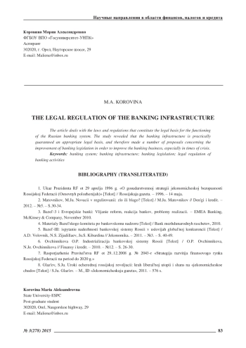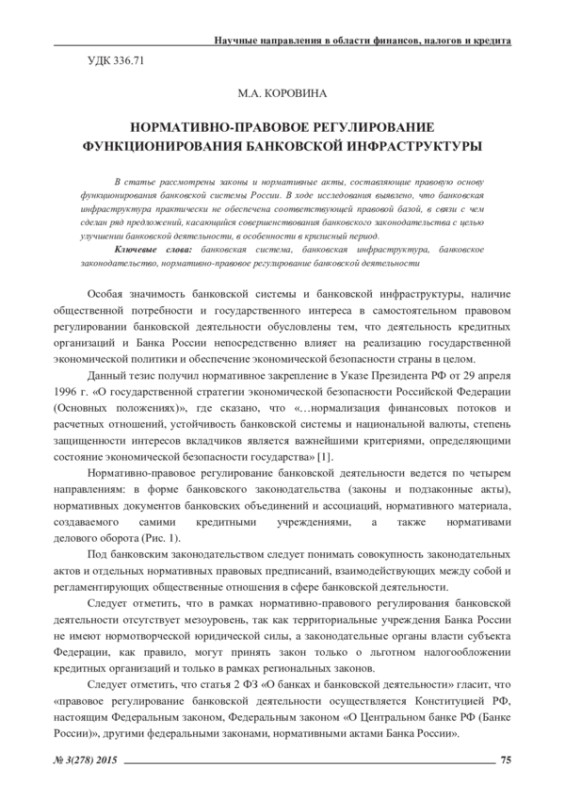 В статье рассмотрены законы и нормативные акты, составляющие правовую основу функционирования банковской системы России. В ходе исследования выявлено, что банковская инфраструктура практически не обеспечена соответствующей правовой базой, в связи с чем сделан ряд предложений, касающийся совершенствования банковского законодательства с целью улучшении банковской деятельности, в особенности в кризисный период