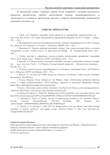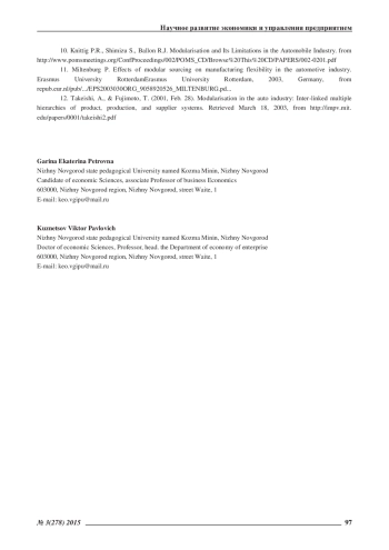 10. Knittig P.R., Shimizu S., Ballon R.J. Modularisation and Its Limitations in the Automobile Industry. from http://www.pomsmeetings.org/ConfProceedings/002/POMS_CD/Browse%20This%20CD/PAPERS/002-0201.pdf.