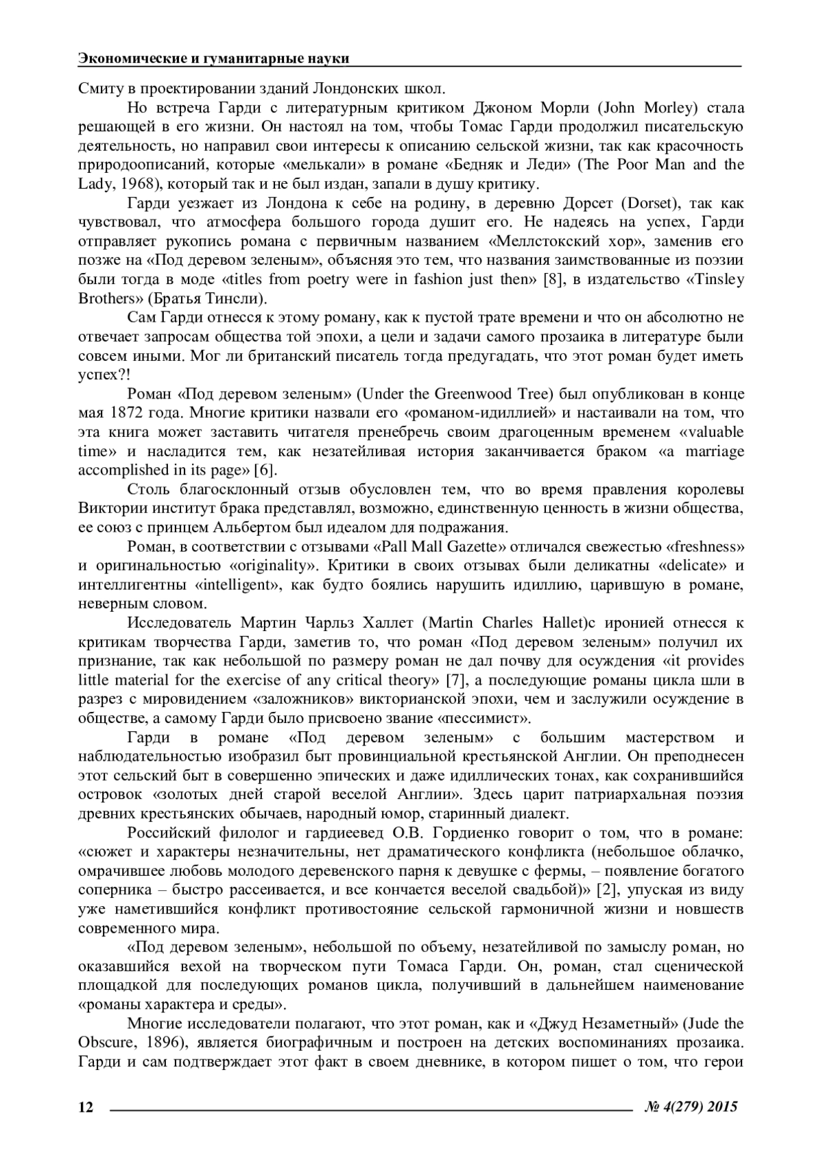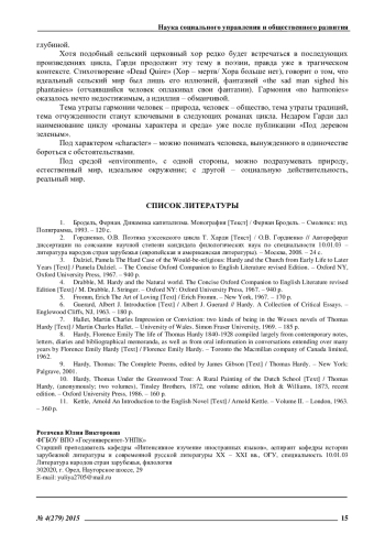 2. Гордиенко, О.В. Поэтика уэссекского цикла Т. Харди [Текст] / О.В. Гордиенко // Автореферат диссертации на соискание научной степени кандидата филологических наук по специальности 10.01.03 - литература народов стран зарубежья (европейская и американская литературы). - Москва, 2008. - 24 с. EDN: NQFPTV