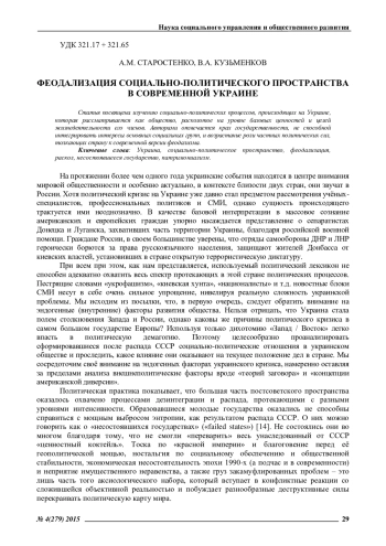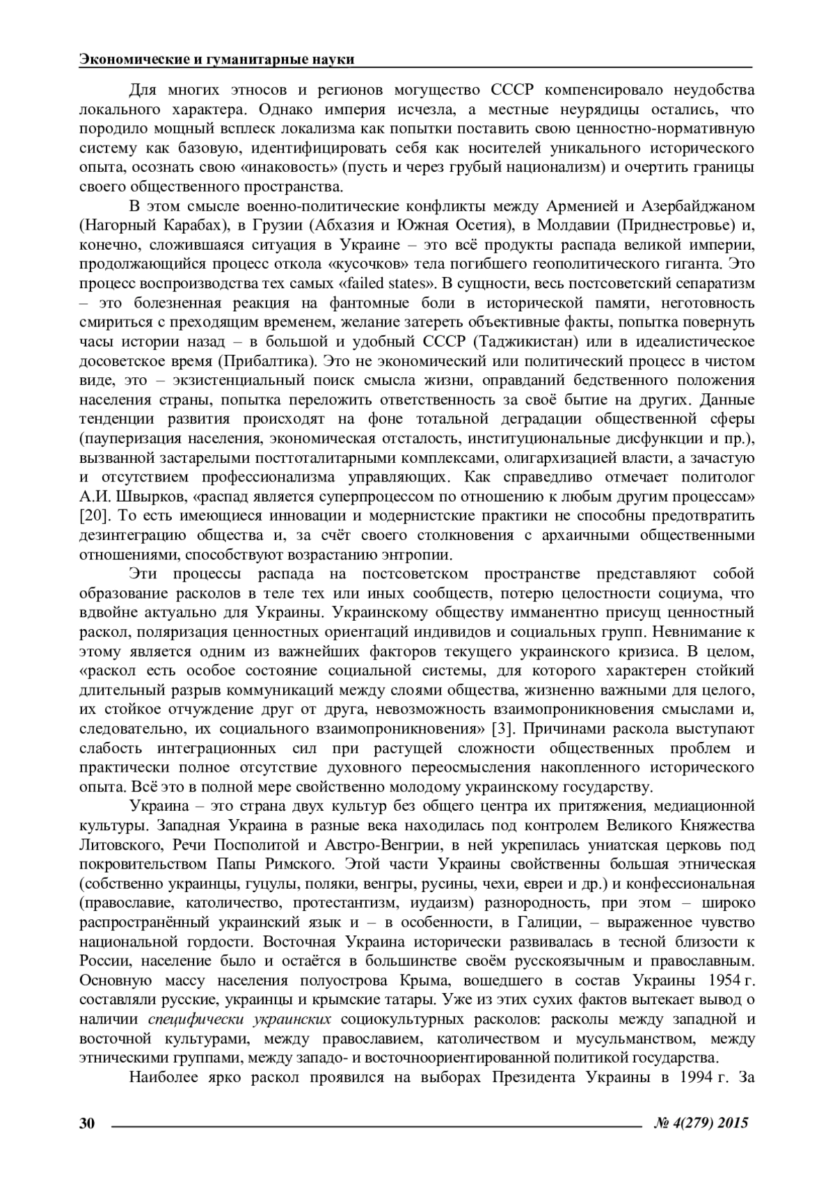 20. Швырков, А.И. Украина: закономерности распада [Текст] / А.И. Швырков // Полития. - 2014. - № 2. - С. 34-47. EDN: VBVVAP