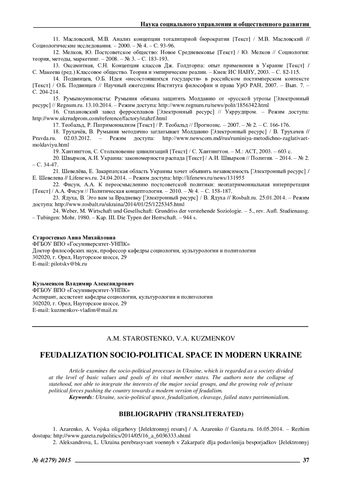 22. Фисун, А.А. К переосмыслению постсоветской политики: неопатримониальная интерпретация [Текст] / А.А. Фисун // Политическая концептология. - 2010. - № 4. - С. 158-187. EDN: OFTSTT