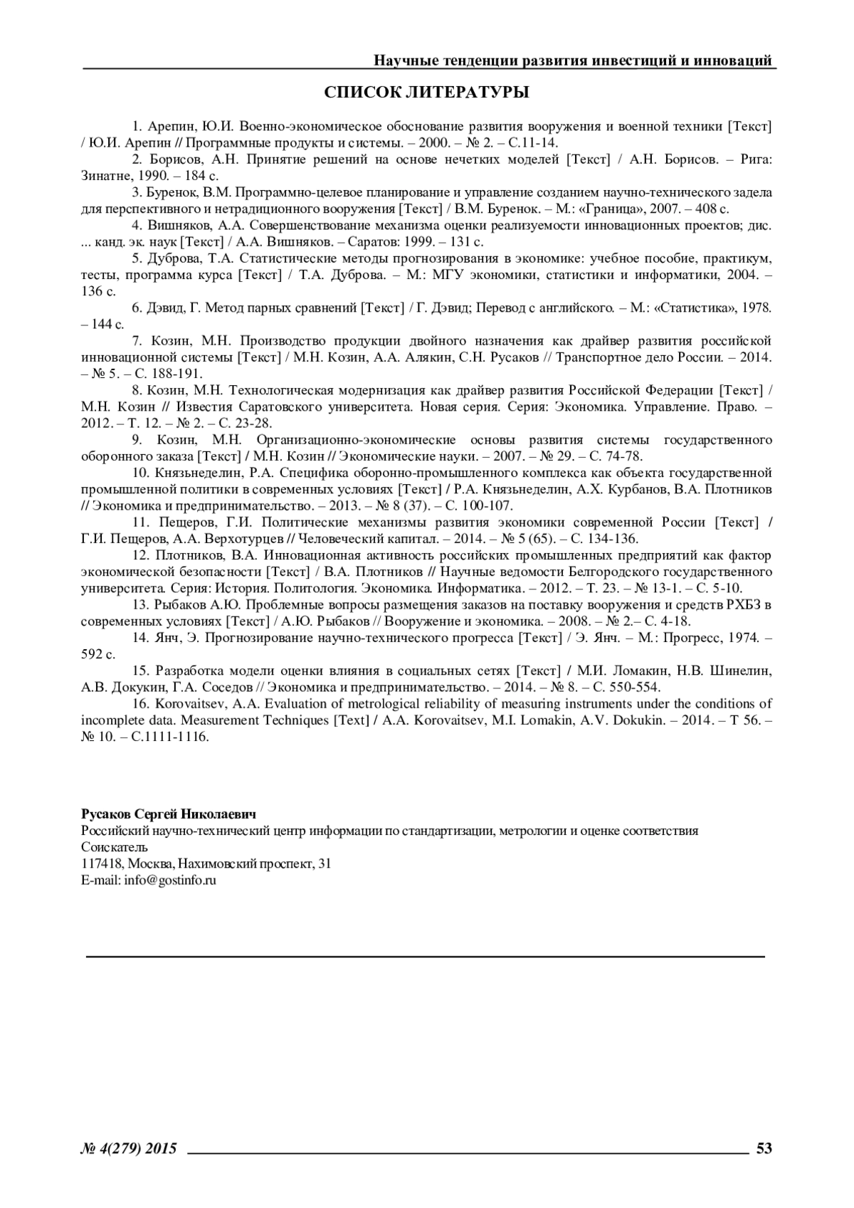 9. Козин, М.Н. Организационно-экономические основы развития системы государственного оборонного заказа /М.Н. Козин//Экономические науки. -2007. -№ 29. -С. 74-78. EDN: MVEJBH