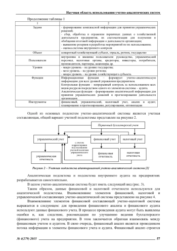 В современных условиях развитие и взаимодействие бухгалтерского и налогового учета требует системности в процессе сбора, накопления и обобщения учетно-аналитических данных. В связи с этим, наиболее актуальным является формирование информационной учетно-аналитической системы, которая охватывает и финансовый, и налоговый, и управленческий учет вместе с их функциональными подсистемами