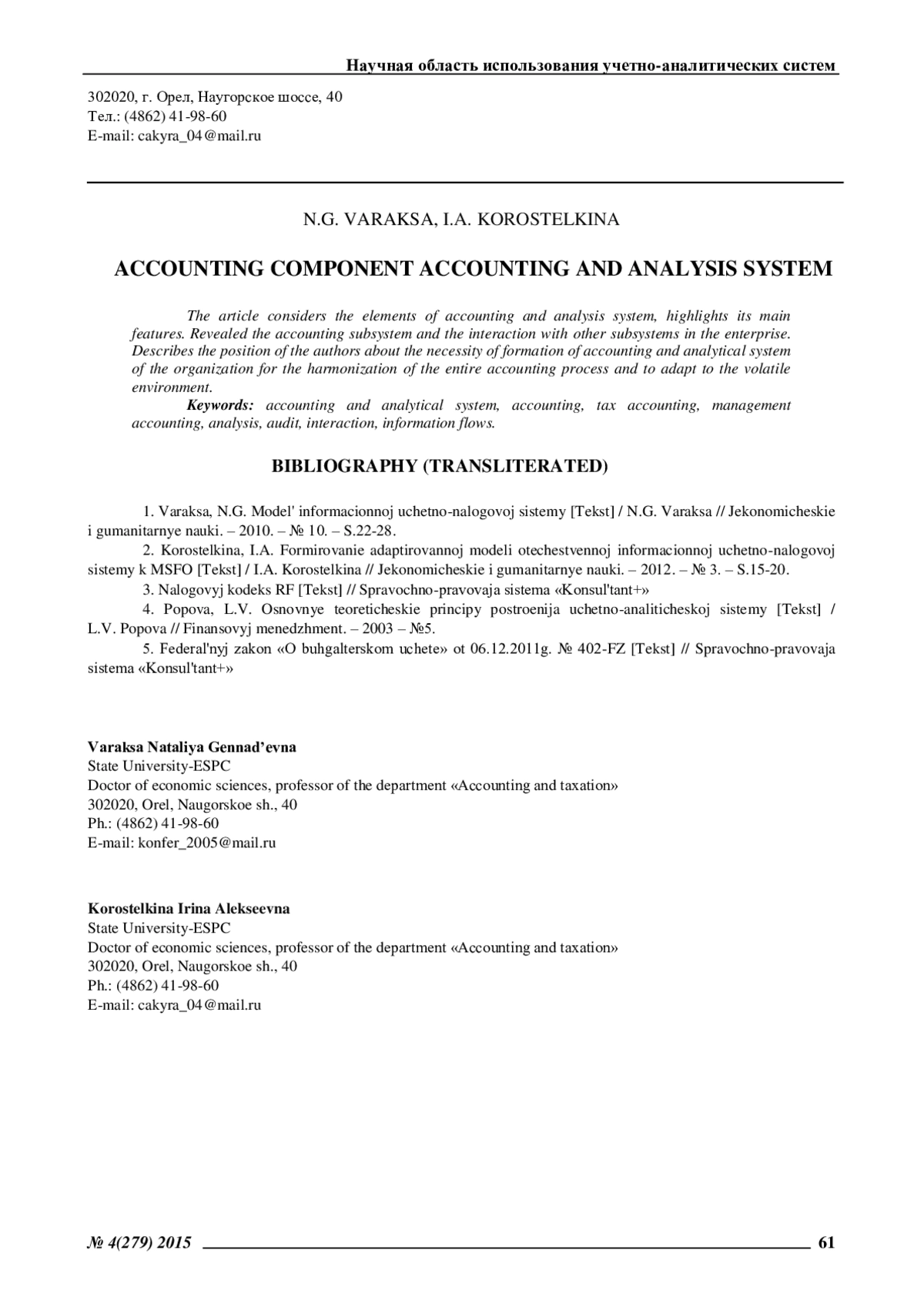 1. Варакса, Н.Г. Модель информационной учетно-налоговой системы [Текст] / Н.Г. Варакса // Экономические и гуманитарные науки. - 2010. - № 10. - С.22-28. EDN: MVWGWV