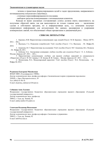 1. Борушко, Н.В. Маркетинговые коммуникации: курс лекций [Текст] / Н. В. Борушко. - Минск: БГТУ, 2012. - 306 с.