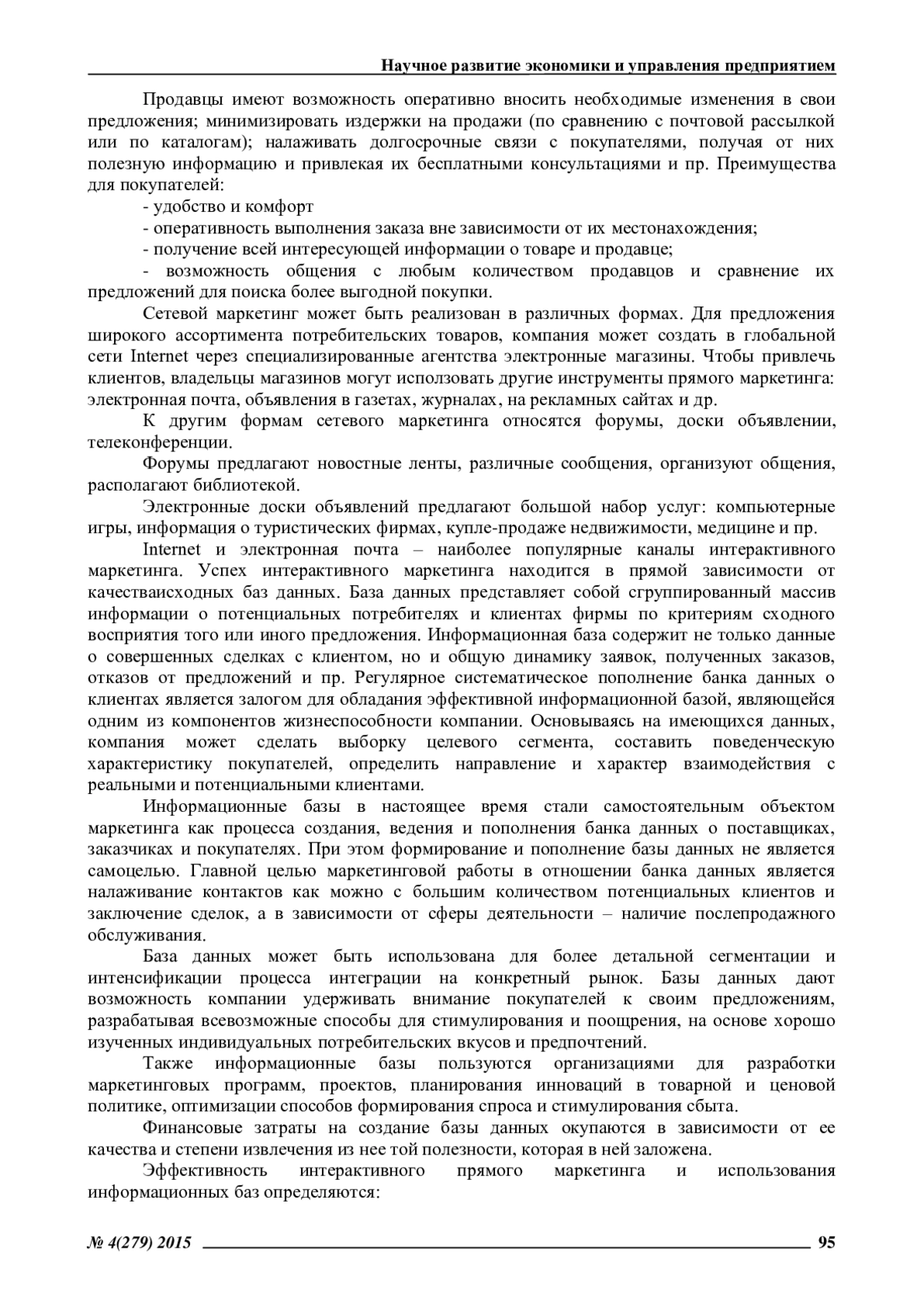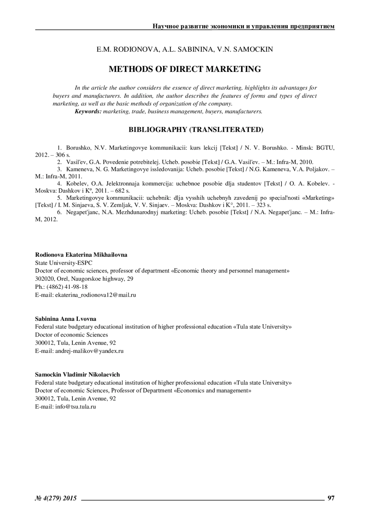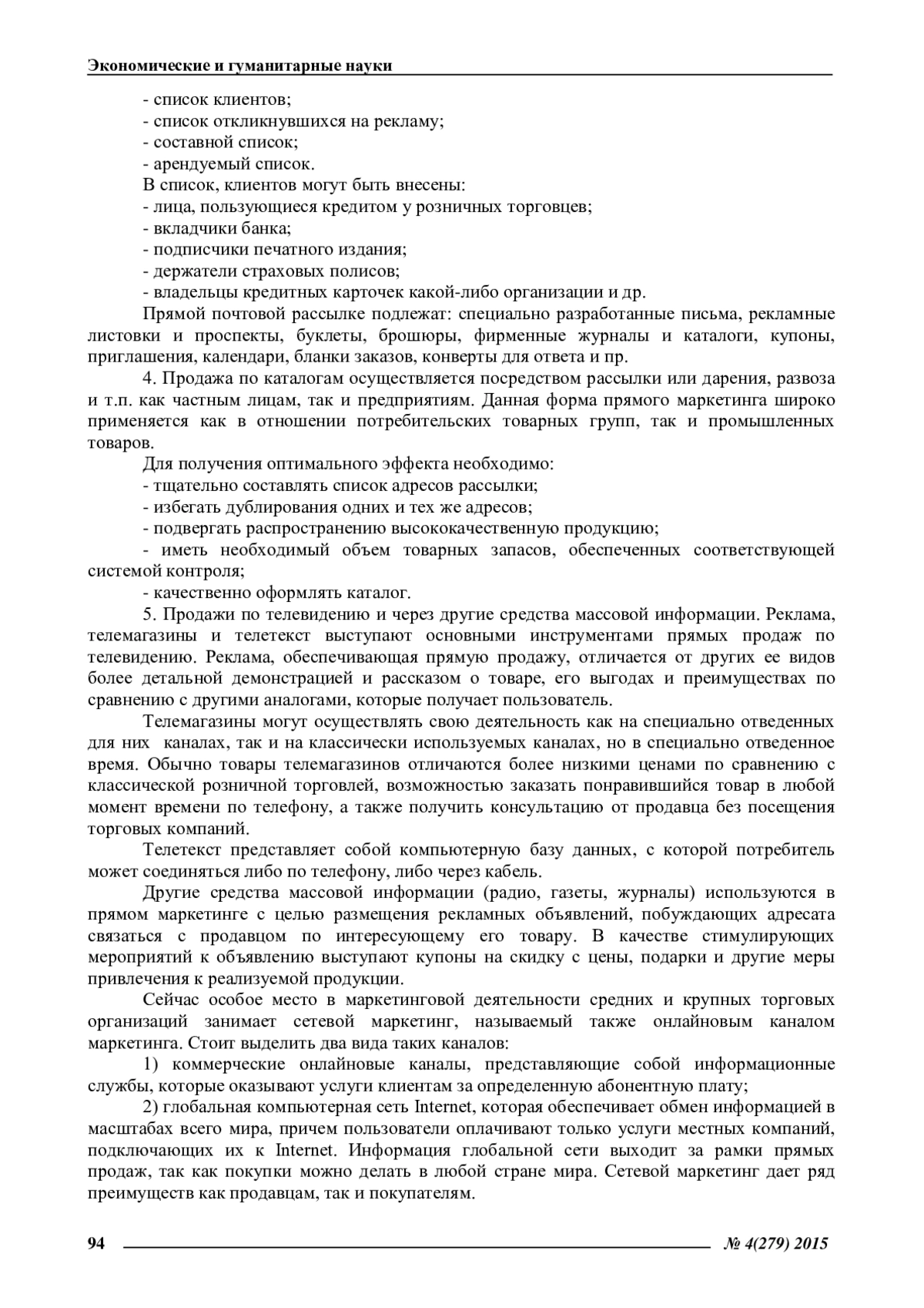 В статье рассматривается сущность прямого маркетинга, выделяются его преимущества для покупателей и производителей. Кроме того, авторы описывают особенности форм и видов прямого маркетинга, а также основные методы их организации на предприятии