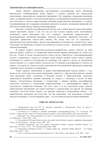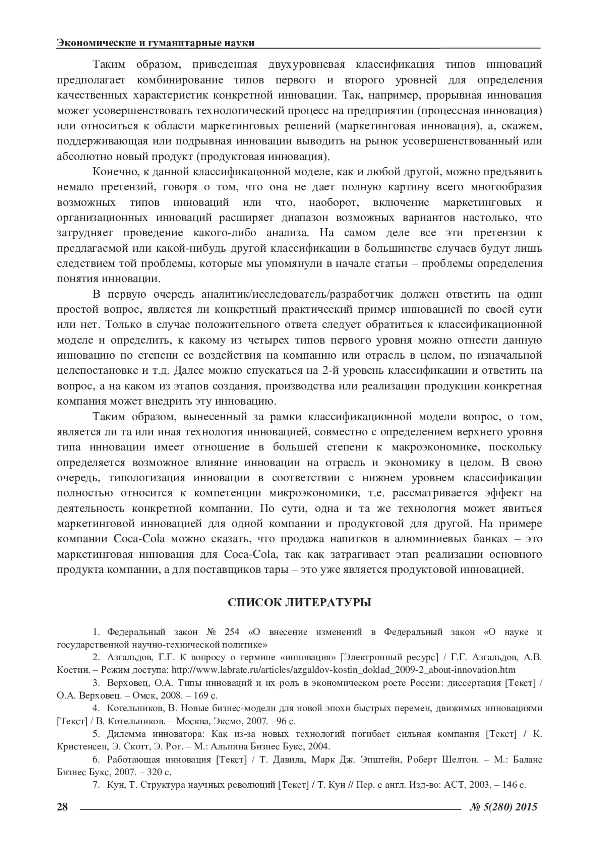 3. Верховец, О.А. Типы инноваций и их роль в экономическом росте России: диссертация [Текст] / О.А. Верховец. - Омск, 2008. - 169 с. EDN: NQDSLN