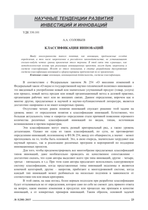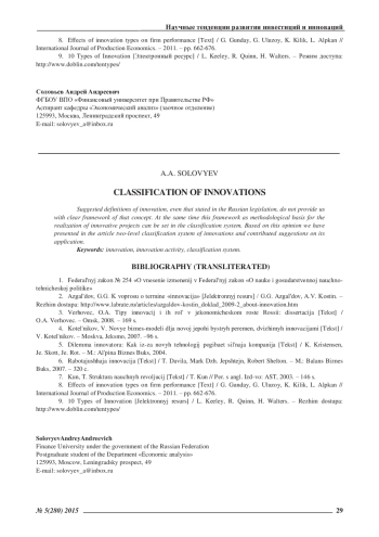 Ввиду многогранности такого понятия, как инновации, предлагаемые сегодня определения, в том числе закрепленное в российском законодательстве, не устанавливают сколько-нибудь четких границ применения этого термина. В этой связи эти «границы», как методологическая основа при реализации инновационных проектов, могут быть закреплены в системе классификации. Исходя из этого понимания, в статье разработана двухуровневая система классификации инноваций и сформулированы предложения по ее применению