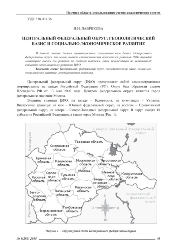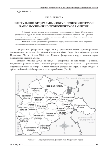 В данной статье дается характеристика геополитического базиса Центрального федерального округа. На основе анализа статистических показателей развития ЦФО проведен мониторинг оценки его регионов по сводным индексам. Даны рекомендации по устойчивому социально-экономическому развитию ЦФО