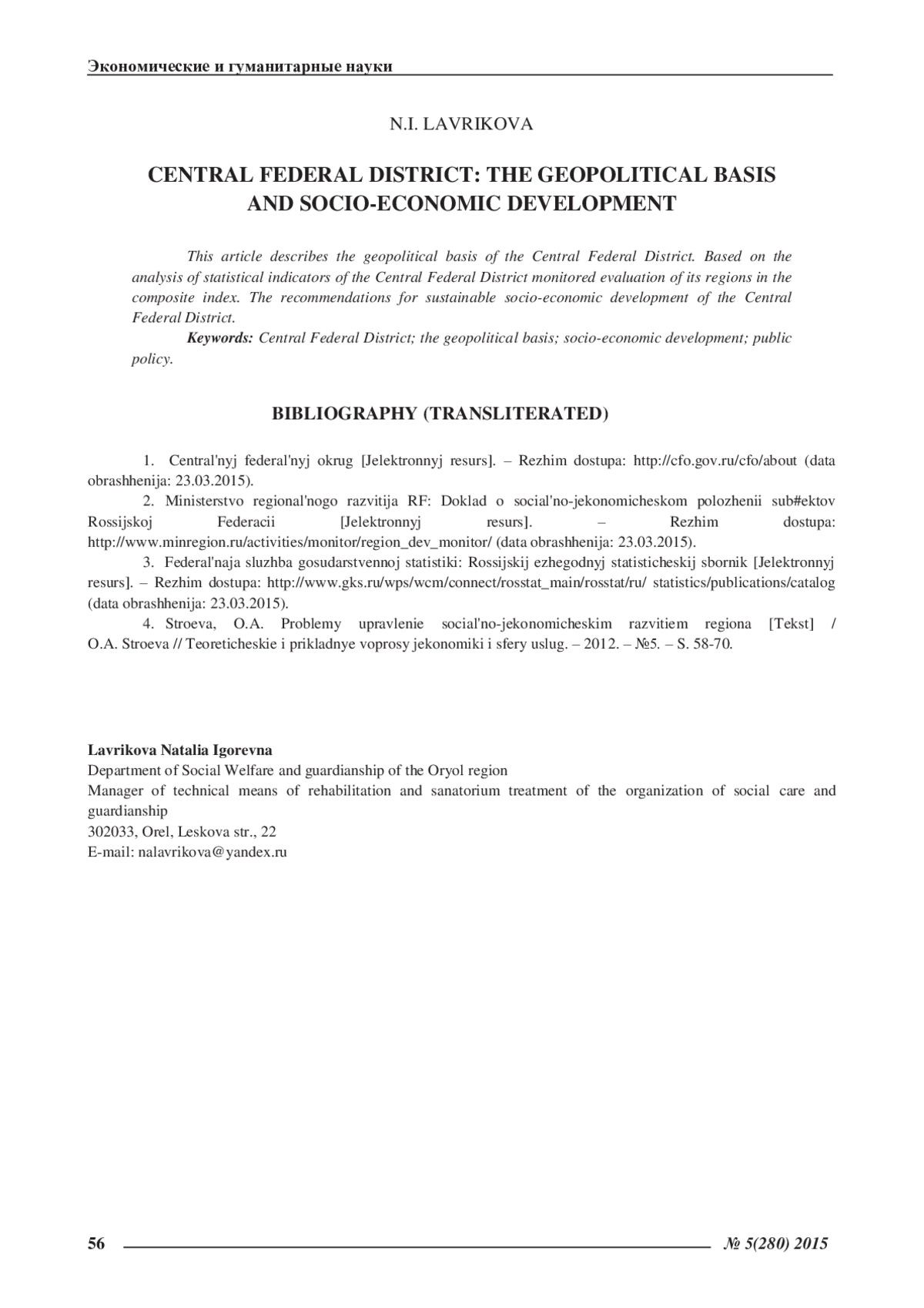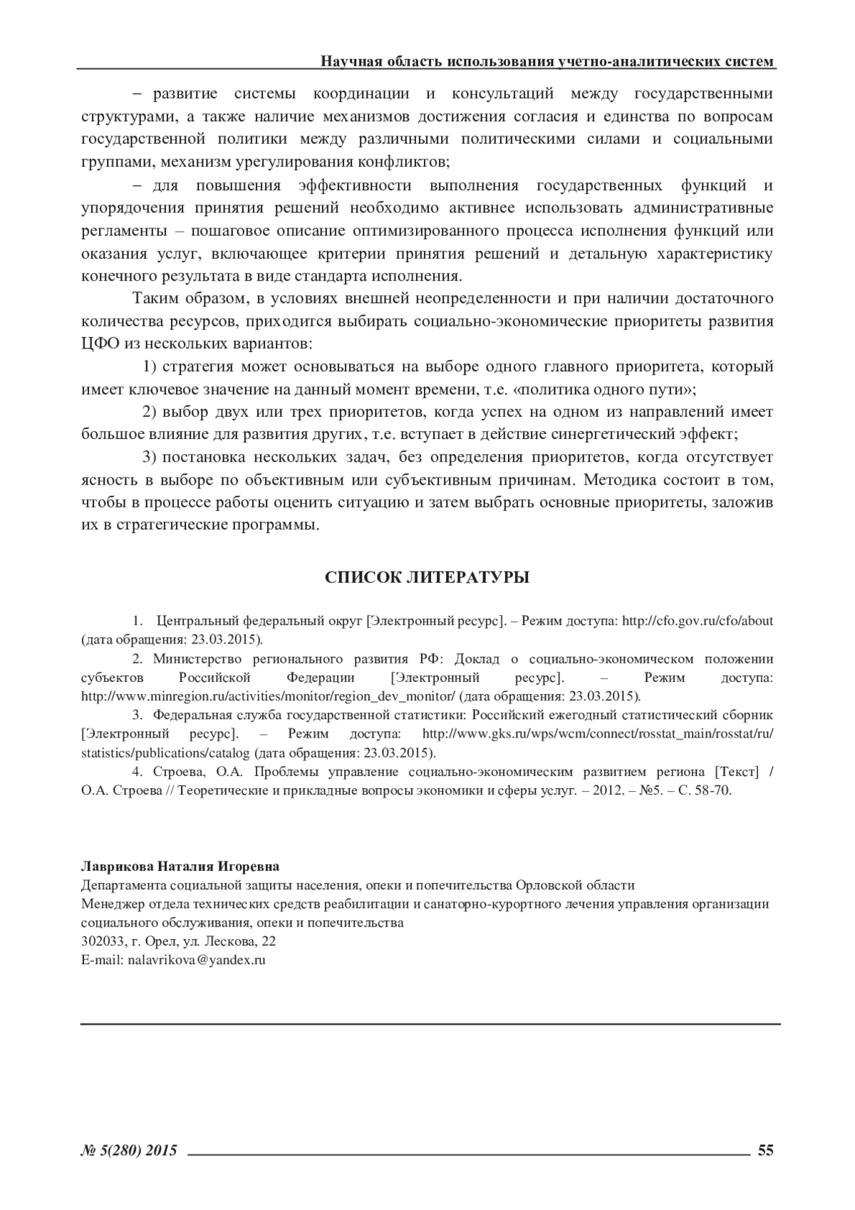 4. Строева, О.А. Проблемы управление социально-экономическим развитием региона [Текст] / О.А. Строева // Теоретические и прикладные вопросы экономики и сферы услуг. - 2012. - №5. - С. 58-70. EDN: OYYVUB