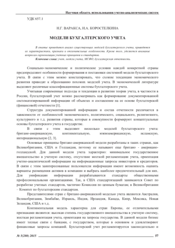 В статье проводится анализ существующих моделей бухгалтерского учета, приводятся их характеристики, признаки и отличительные особенности. Кроме того, уделяется внимание вопросам гармонизации учетных принципов и стандартов