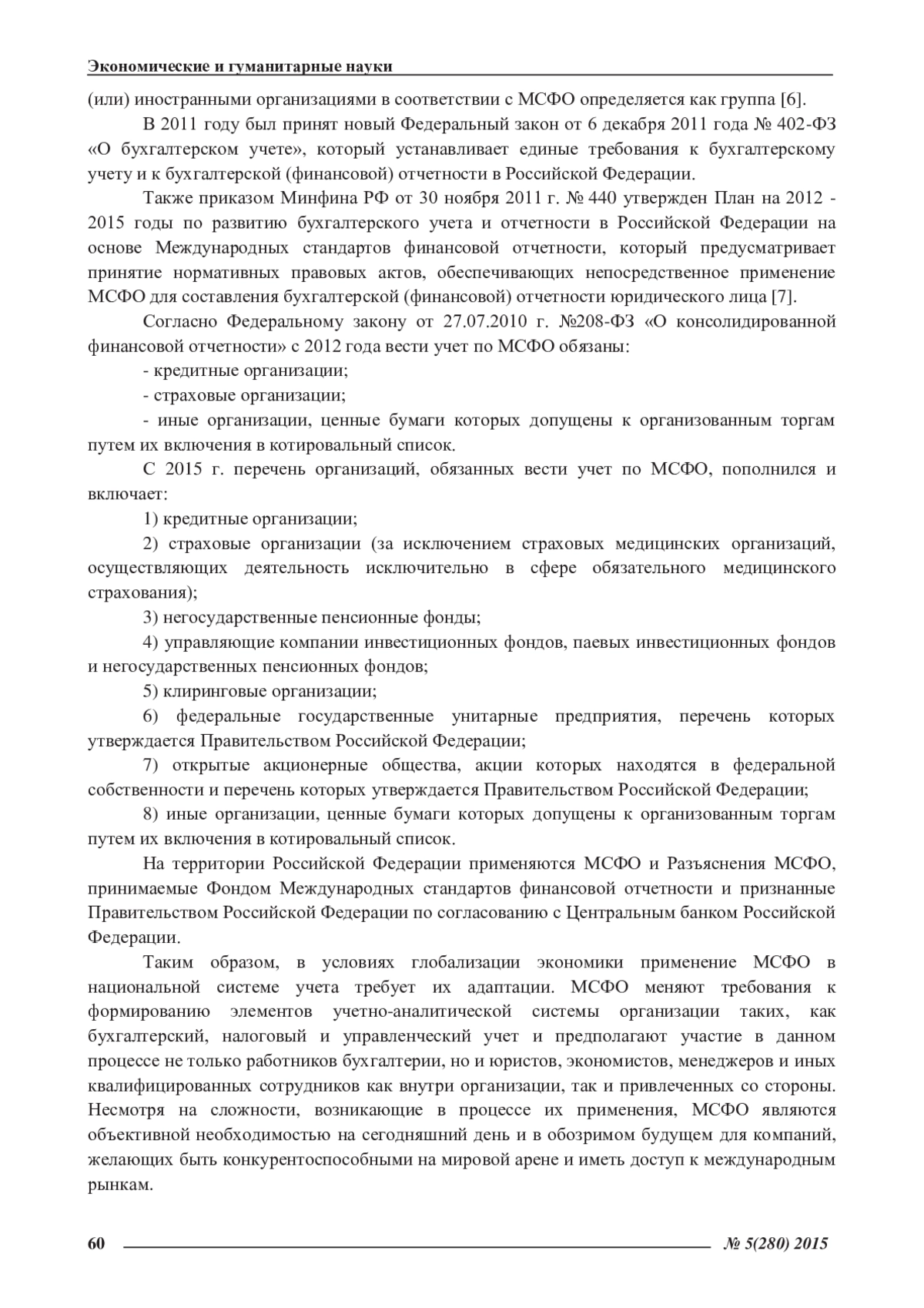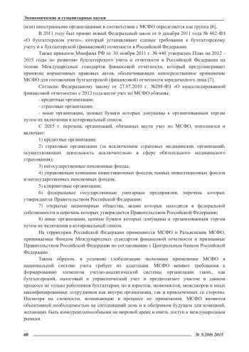 7. Приказ Минфина РФ от 30 ноября 2011 г. № 440 «План Минфина РФ на 2012 - 2015 годы по развитию бухгалтерского учета и отчетности в Российской Федерации на основе Международных стандартов финансовой отчетности» [Текст] // Справочно-правовая система «Консультант ».
