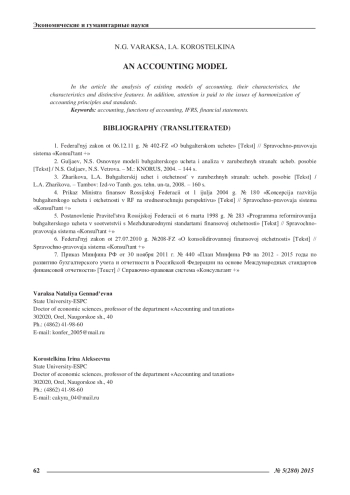 2. Гуляев, Н.С. Основные модели бухгалтерского учета и анализа в зарубежных странах: учеб. пособие [Текст] / Н.С. Гуляев, Н.С. Ветрова. - М.: КНОРУС, 2004. - 144 с. EDN: QQGTJX