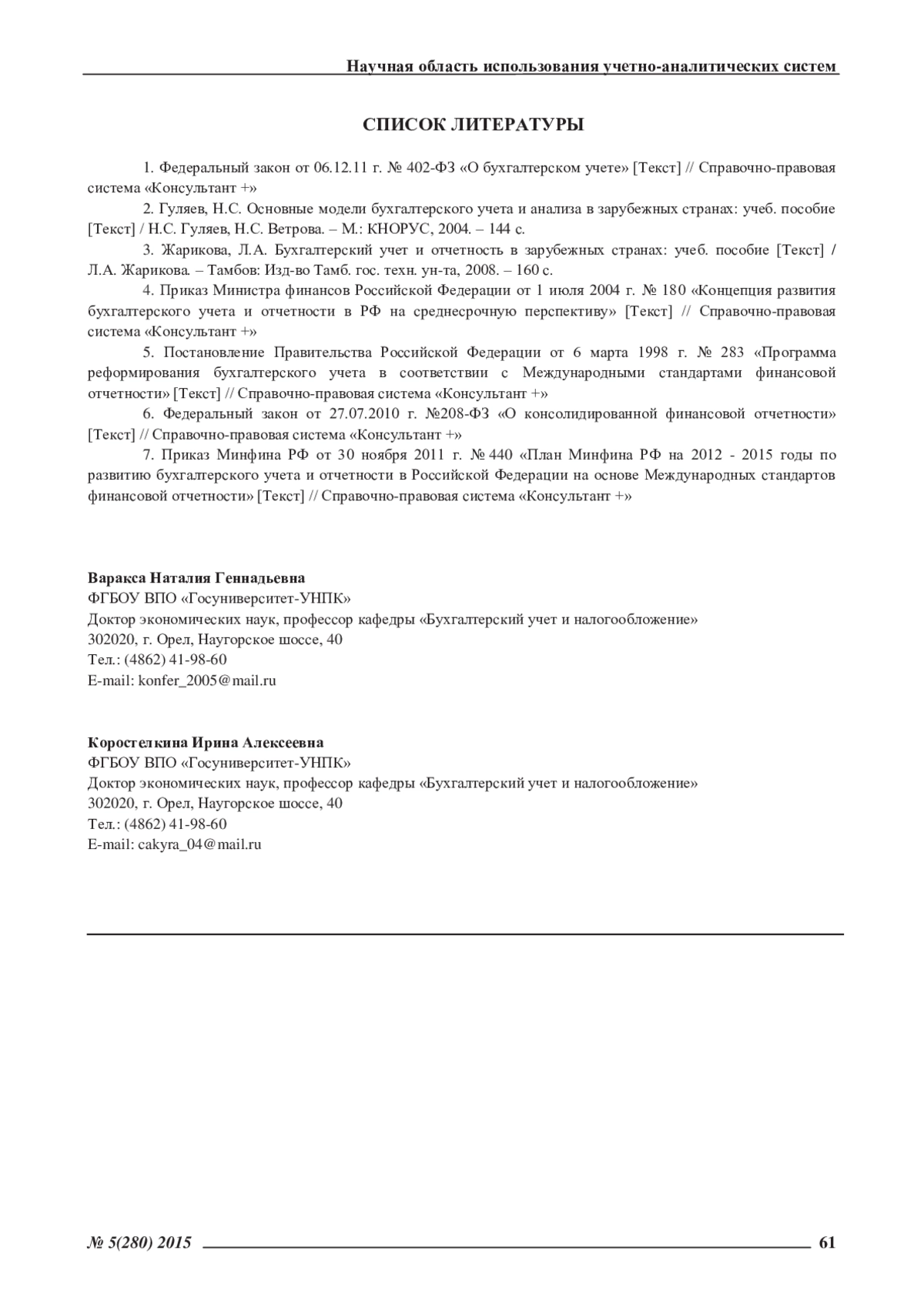 1. Федеральный закон от 06.12.11 г. № 402-ФЗ «О бухгалтерском учете» [Текст] // Справочно-правовая система «Консультант ».