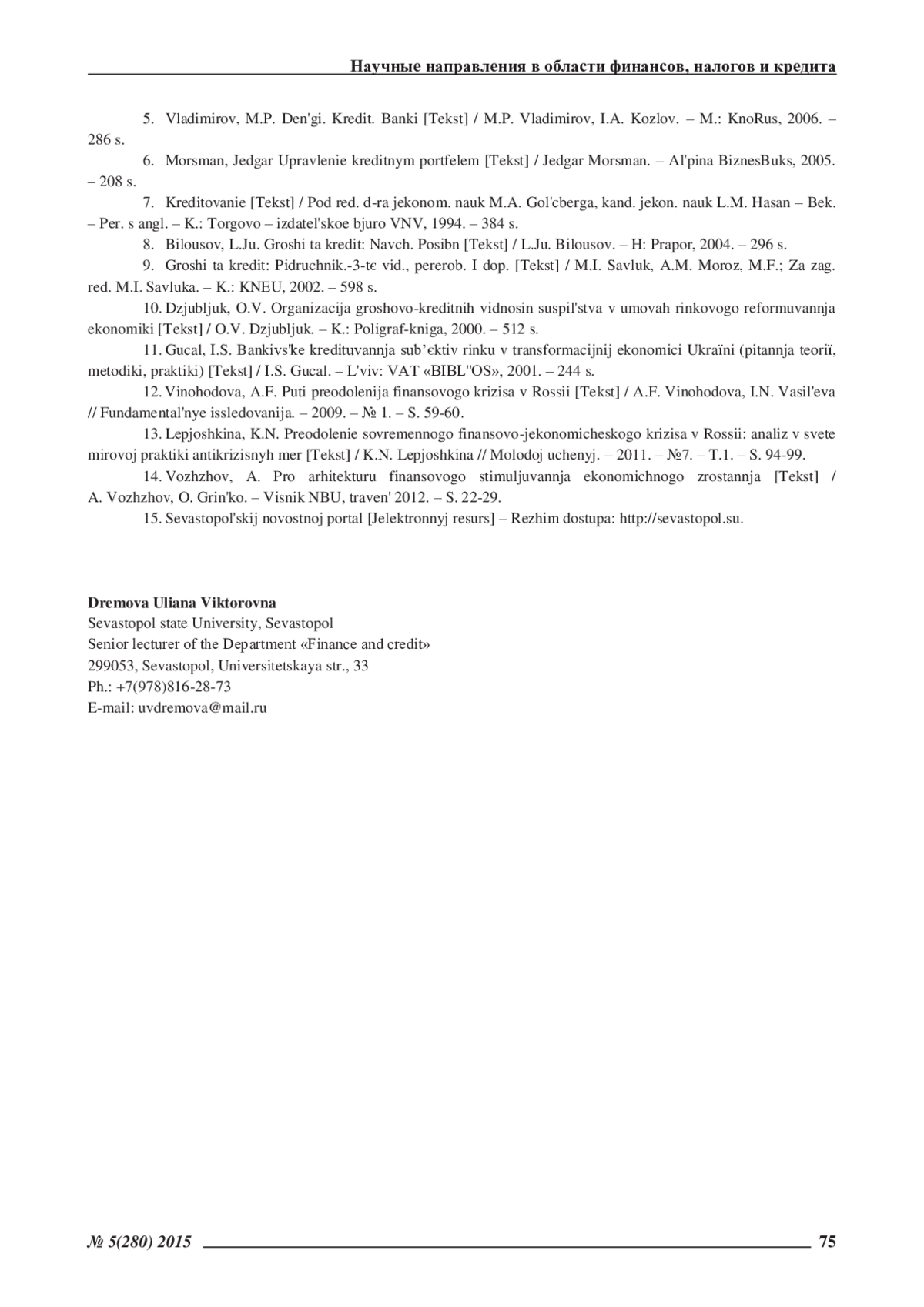 5. Владимиров, М.П. Деньги. Кредит. Банки [Текст] / М.П. Владимиров, И.А. Козлов. - М.: КноРус, 2006. - 286 с.