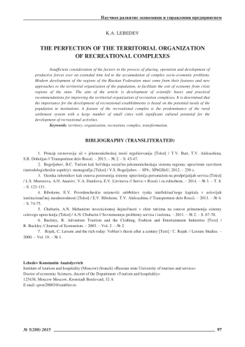 1. Принцип равновесия сил в экономической теории регулирования [Текст] / Т.В. Барт, Т.В. Алексашина, С.Б. Дохолян // Транспортное дело России. - 2013. - № 2. - С. 45-47. EDN: QYRNLD