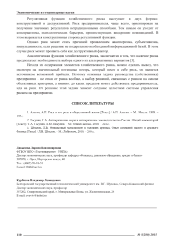 1. Альгин, А.П. Риск и его роль в общественной жизни [Текст] / А.П. Альгин. - М.: Мысль: 1989. - 192 с.