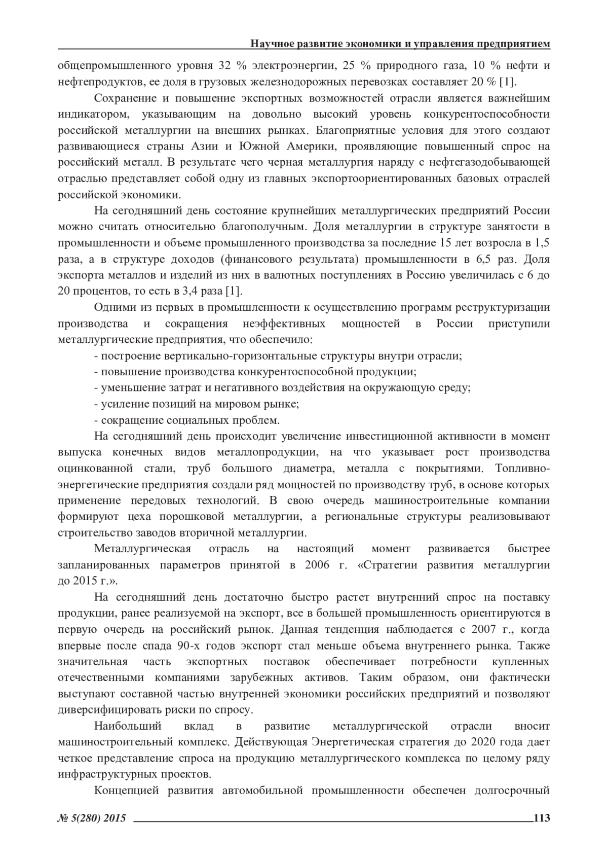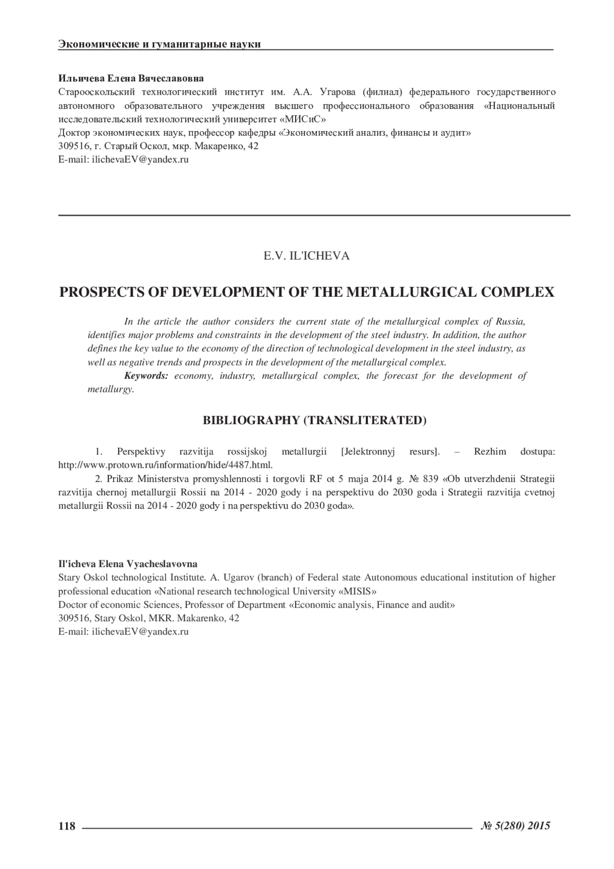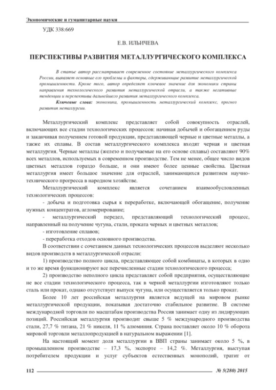 В статье автор рассматривает современное состояние металлургического комплекса России, выявляет основные его проблемы и факторы, сдерживающие развитие металлургической промышленности. Кроме того, автор определяет ключевое значение для экономики страны направления технологического развития металлургической отрасли, а также негативные тенденции и перспективы дальнейшего развития металлургического комплекса