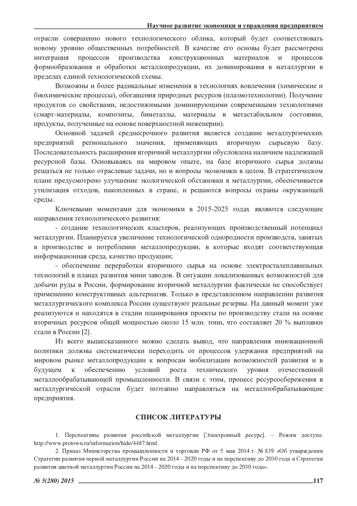 1. Перспективы развития российской металлургии [Электронный ресурс]. - Режим доступа: http://www.protown.ru/information/hide/4487.html.