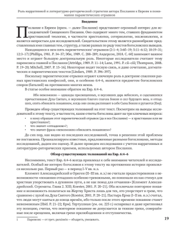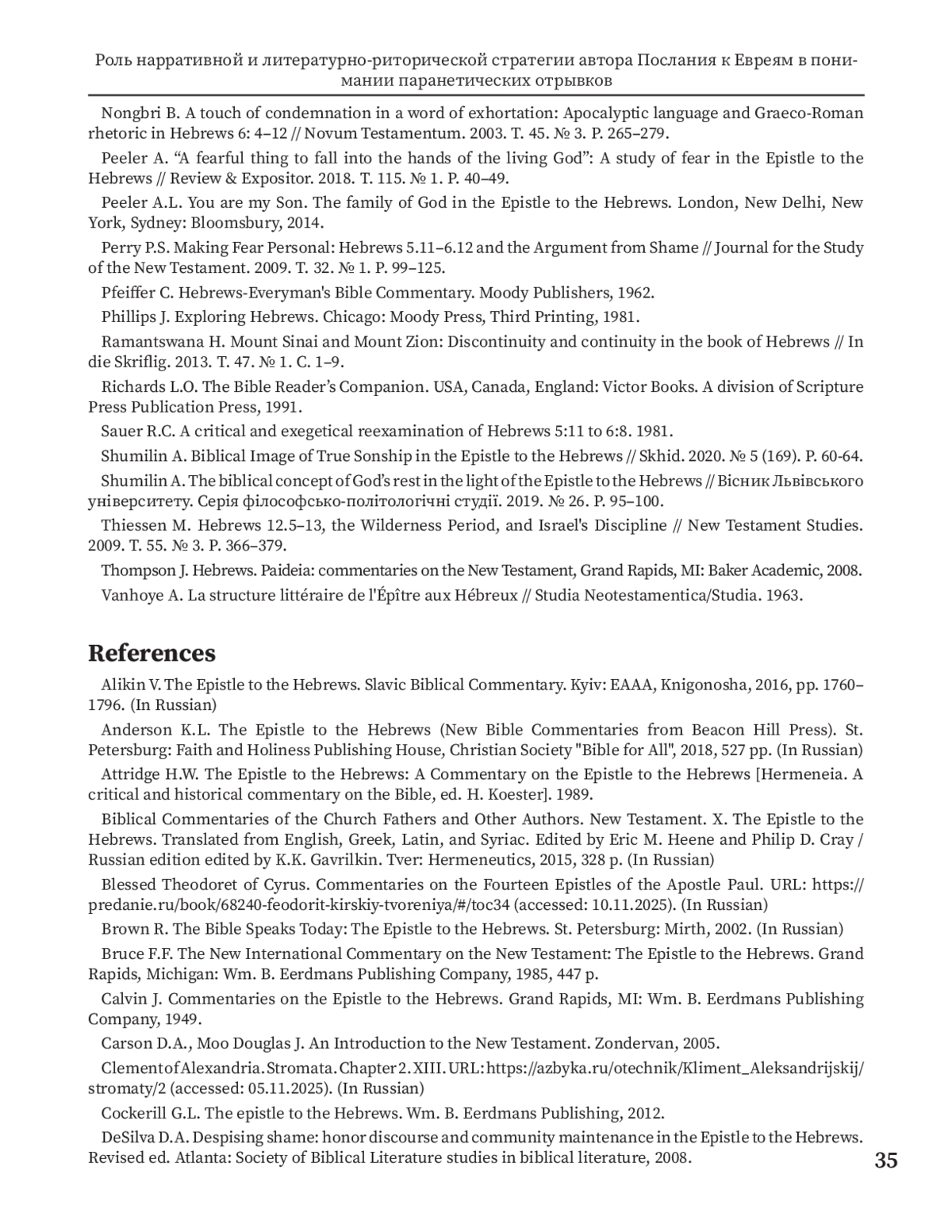 35. Guzmán R., Martin M.W. Is Hebrews 5: 11-6: 20 Really a Disgression? // Novum Testamentum. 2015. Т. 57. № 3. P. 295-310.