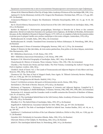 9. Гаджиева У. Конфессиональная деятельность последнего Албанского католикоса // Dövlət və Din. 2018. № 3 (56). С. 66-72.