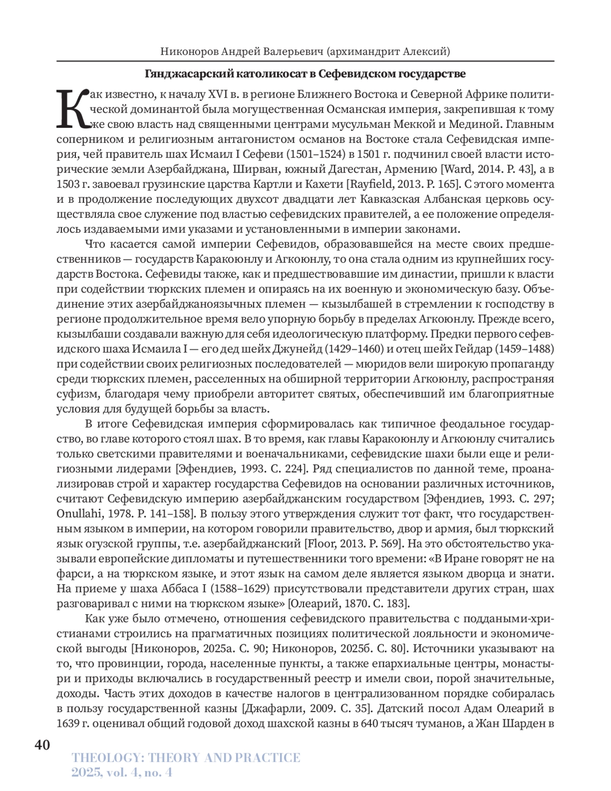 30. Никоноров А.В. Епископские кафедры Гянджасарского католикосата в XVII веке // Теология: теория и практика. 2025. Т. 4. № 3. С. 69-82.