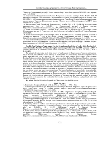 6. Постановление Пленума Верховного Суда Российской Федерации от 23 декабря 2014 г. № 21 “О дне начала деятельности федеральных судов на территориях Республики Крым и города федерального значения Севастополя” [Электронный ресурс] // Режим доступа: https://www.consultant.ru/document/cons_doc_LAW_134232/(дата обращения: 31.01.2025).