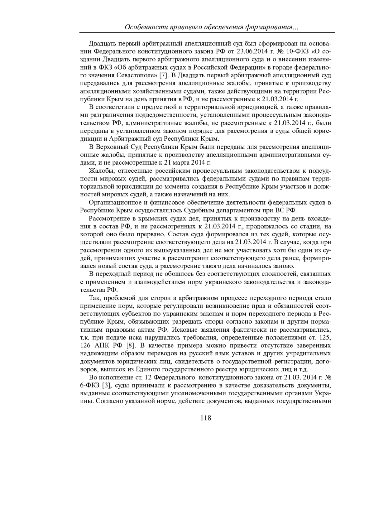 7. Федеральный конституционный закон Российской Федерации от 23 июня 2014 г. № 10-ФКЗ “О создании Двадцать первого арбитражного апелляционного суда и о внесении изменений в ФКЗ “Об арбитражных судах в Российской Федерации” в городе федерального значения Севастополе” [Электронный ресурс] // Режим доступа: https://www.consultant.ru/document/cons_doc_LAW_164495/(дата обращения: 31.01.2025).