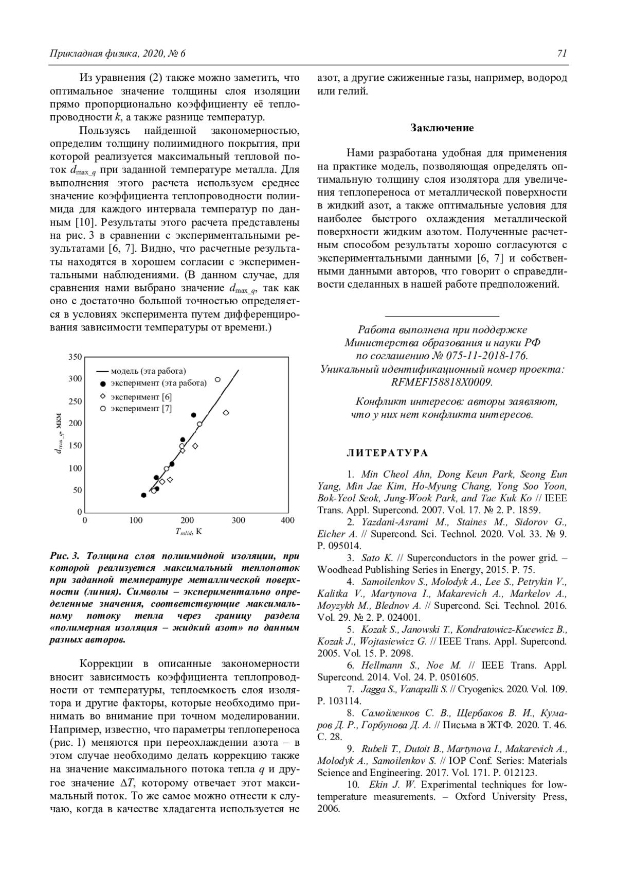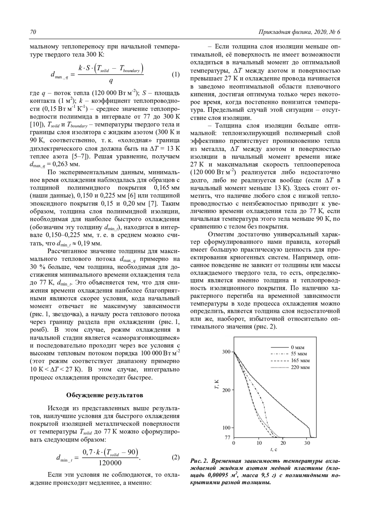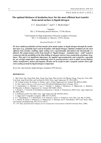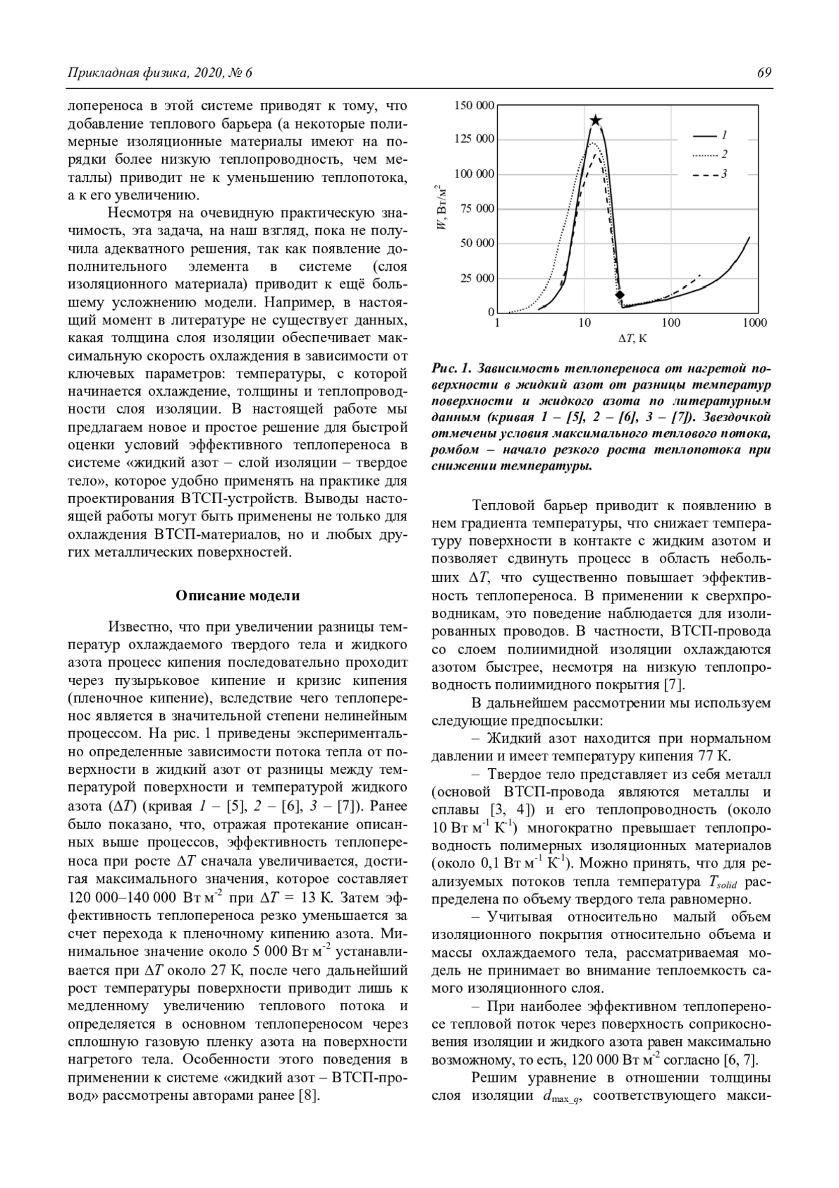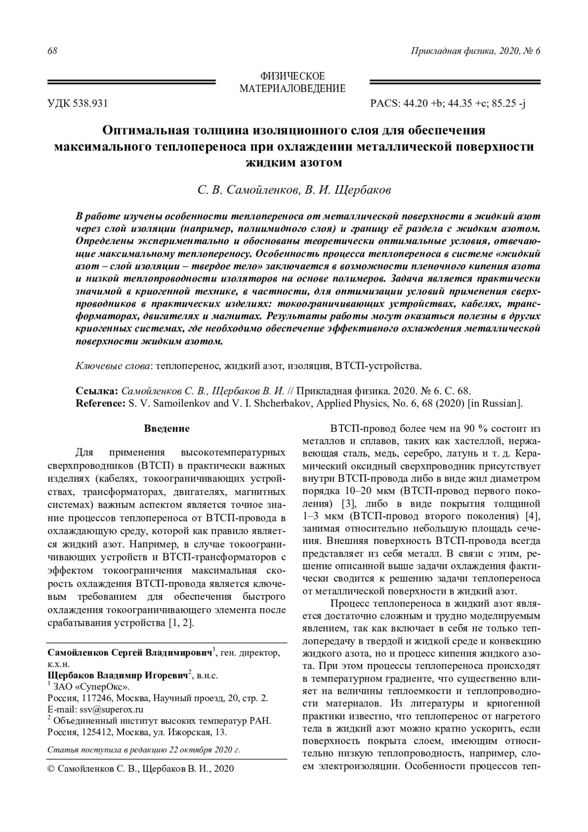 Самойленков С. В., Щербаков В. И. Оптимальная толщина изоляционного слоя для обеспечения максимального теплопере-носа при охлаждении металлической поверхности жидким азотом 68