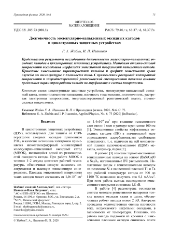 1. Жабин Г. А., Архипов Д. Ю., Темирязева М. П. // Прикладная физика. 2019. № 5. С. 54.