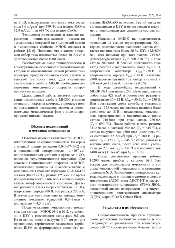 4. Отбор тока c МНОК более 24 А/см2 при температуре 830–850 оC резко сократил время его работы до 200 часов из-за интенсивного испарения Ва и деградации эмиссионного покрытия.