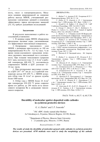 G. A. Zhabin and I. P. Ivanenko Durability of molecular sputter-deposited oxide cathodes in cyclotron protective devices 73