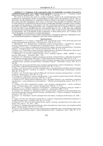 19. Упоров И.В. Компетенция представительного органа муниципального образования: праворегулирующий аспект // Modern Science. 2019. № 3. С. 278-281.