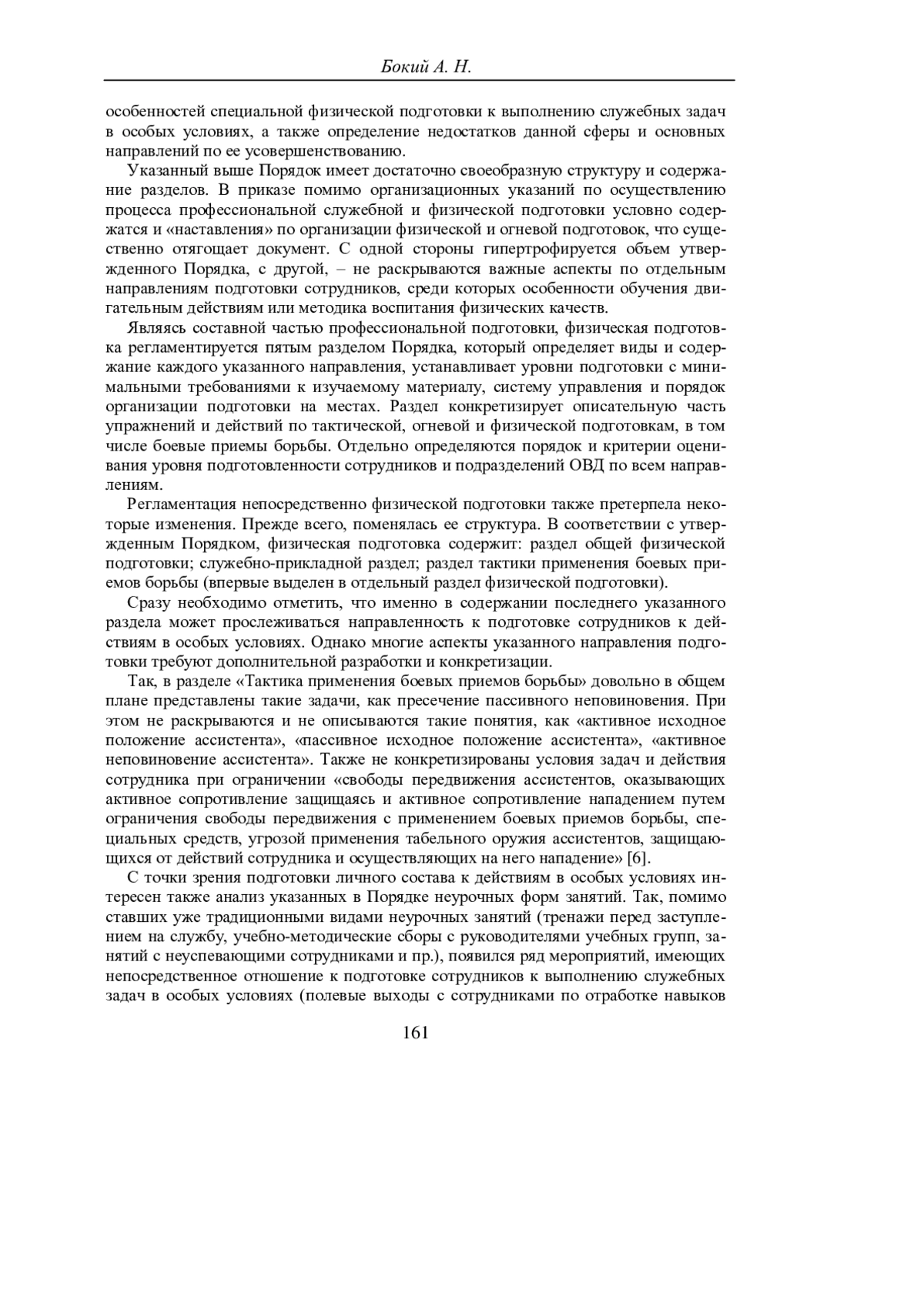 4. Бокий А.Н. Подготовка сотрудников полиции к применению физической силы, специальных средств и огнестрельного оружия при выполнении оперативно-служебных задач в особых условиях: учебно-методическое пособие. - Симферополь: КФ КрУ МВД России, 2024. - 71 с.