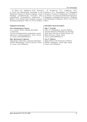 Заключение. Применение модели интеграции педагогики и инженерии способствует формированию мотивирующей образовательной среды для профессионального, личностного роста, развития и самореализации обучающихся и педагогов. Реализация межпредметных связей в процессе разработки интегративных программ обучения, включающих новейшие технические достижения в диалоге с социогуманитарными знаниями актуальна не только для школы, но и для вузов, СПО, предприятий как фактор преемственности. Модель интеграции педагогики и инженерии целесообразно распространить на площадках образовательных организаций России.