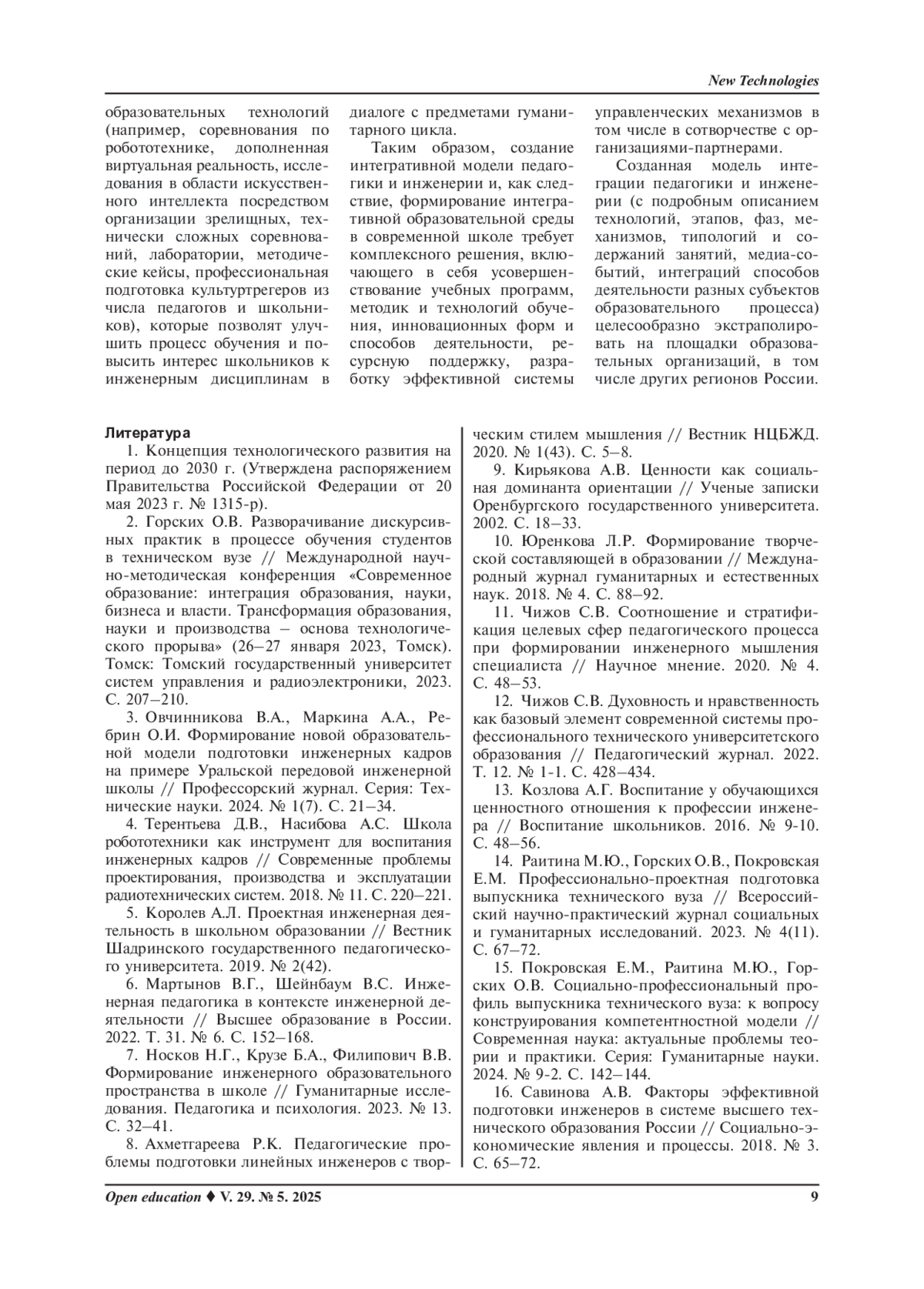 Цель. Целью статьи является обоснование разработки интегрированной модели педагогики и инженерии в образовательном пространстве школы. Актуальность исследования на социально-педагогическом уровне связана с решением ключевых задач государства и потребностью общества в подготовке инженерных кадров, разработкой инструментария для развития научно-технического творчества и научно-исследовательского потенциала школьников, стимулирования их мотивации к инженерным профессиям и сфере высоких технологий. На научно-методическом уровне актуальность исследования обусловлена необходимостью разработки и внедрения инновационных методов обучения, связанных с синтезом разных учебных предметов гуманитарного цикла во взаимосвязи с техническими дисциплинами.