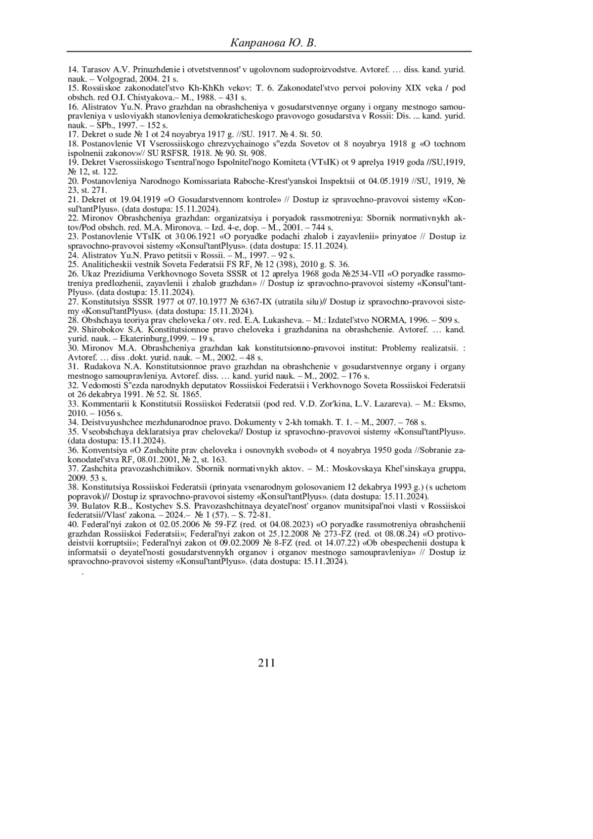2. Скрябина М.В. Реализация конституционного права граждан на обращения в органы публичной власти: Дисс.. канд. юрид. наук. - СПб., 2007. - 230 с. EDN: NOTDRX