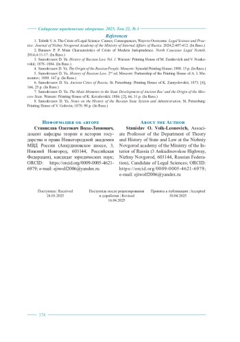 2. Баранов П. П. Основные контуры кризиса современной юридической науки // Северо-Кавказский юридический вестник. 2014. № 4. С. 11-17.