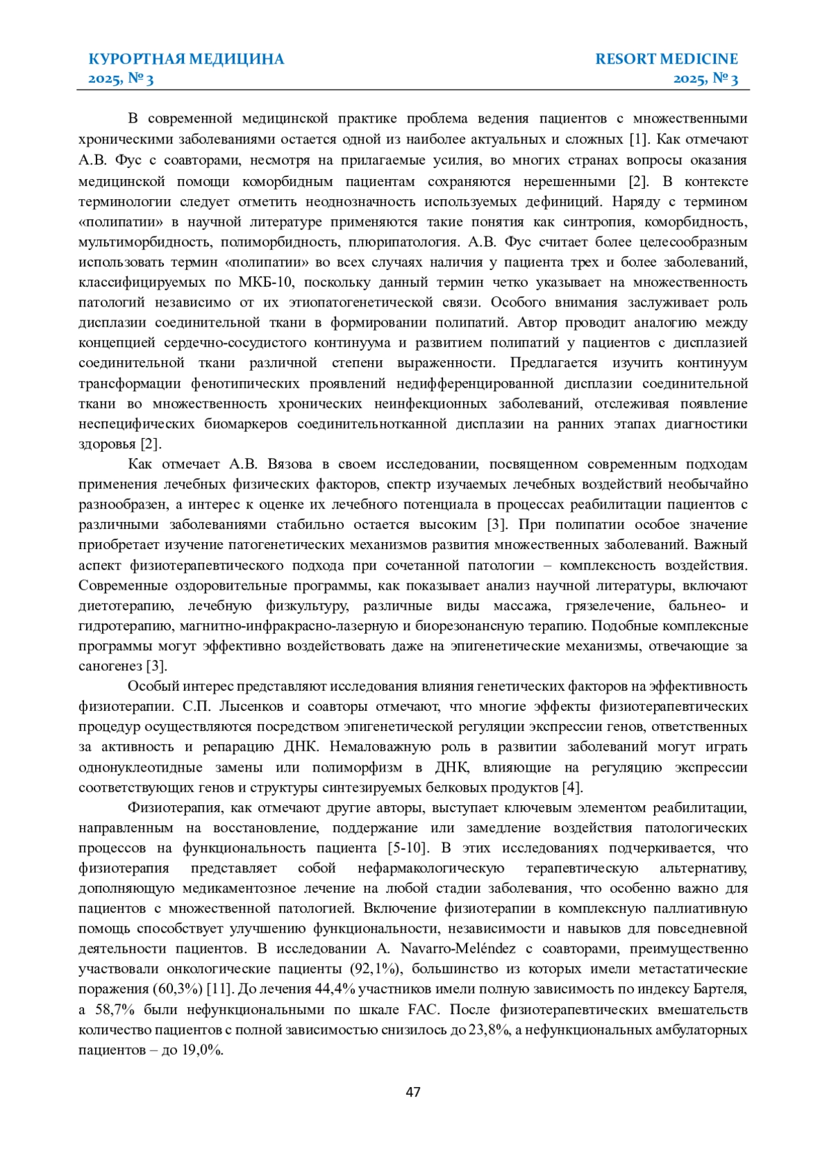 Статья: ПЕРСОНАЛИЗАЦИЯ КОМПЛЕКСНОЙ ФИЗИОТЕРАПИИ БОЛЬНЫХ С ПОЛИПАТИЕЙ (2025)