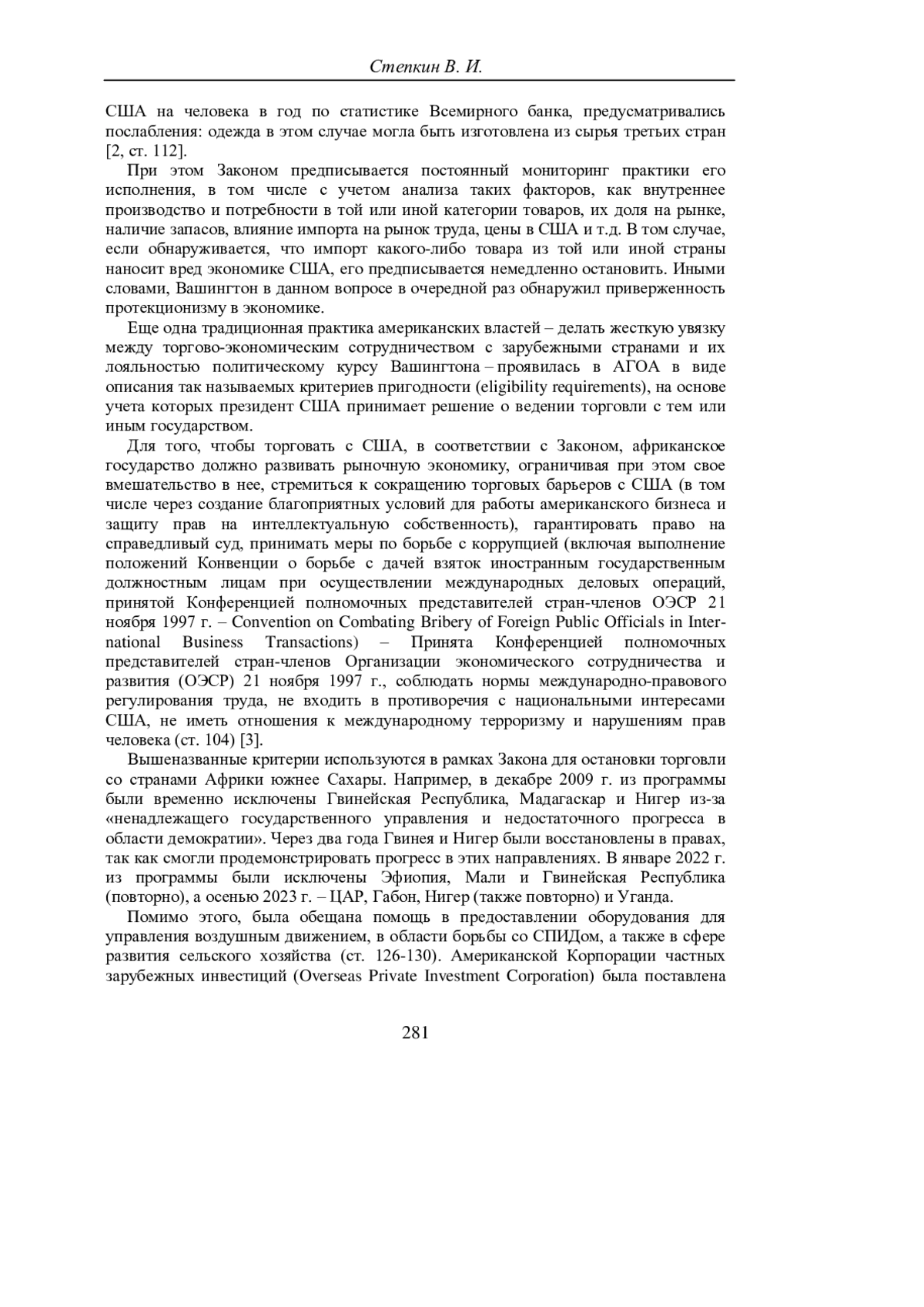 9. Kategekwa J. Recalibrating U.S. Economic Engagement with Africa in Light of the Implementation of the AfCFTA and the Final Days of the Current AGOA Authorization // The Brown Capital Management Africa Forum. Paper No. 11 - URL: https://agoa.info/images/documents/16186/kategekwa-recalibrating-useconomic-engagement-with-africa-in-light-of-the-implementation-of-the-afcfta-and-the-final-days-of-the-current-agoa-authorization.pdf (дата обращения: 03.03.2024).
