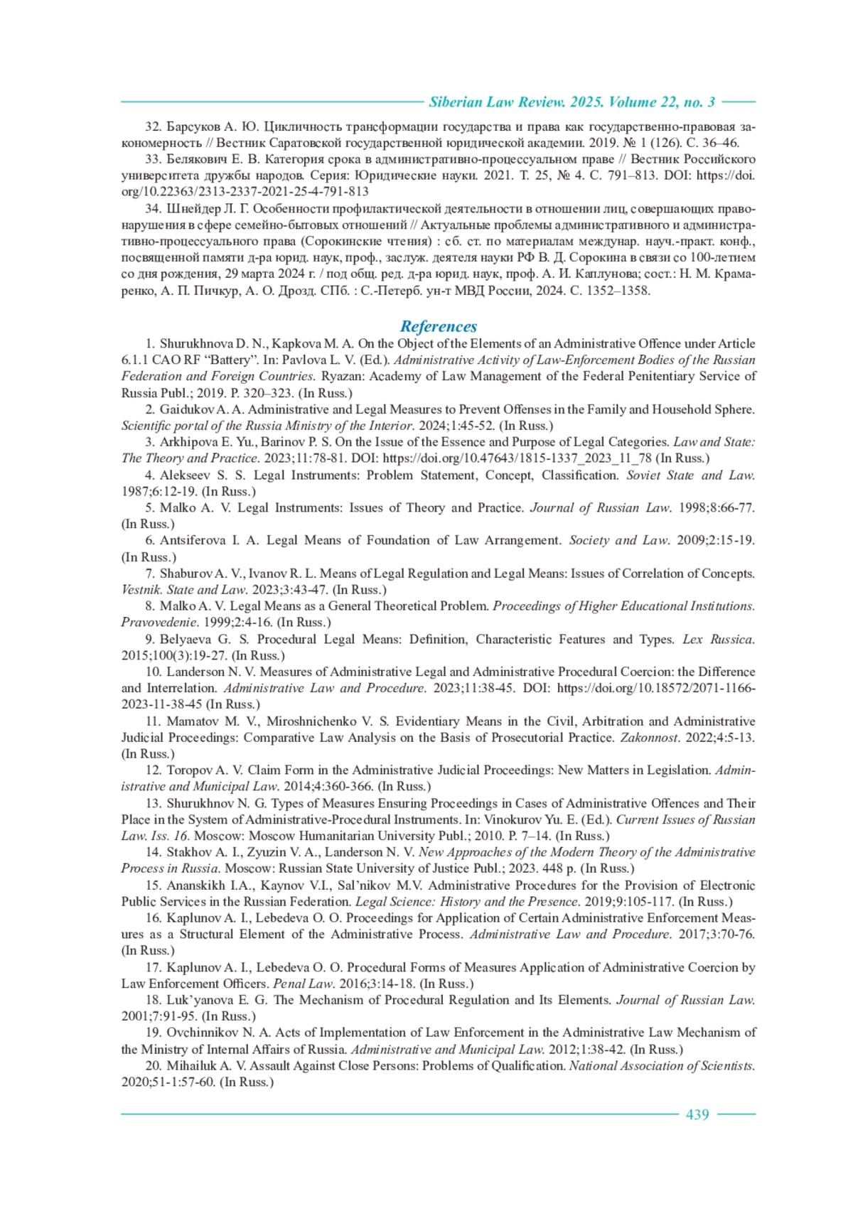 31. Шергин А. П. Процессуальная составляющая правового регулирования административной ответственности // Административное право и процесс. 2010. № 3. С. 3-7.