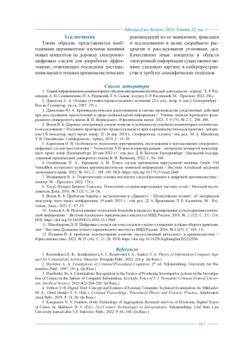5. Карепанов Н. В. Особенности технологии агрегирования, исследования и использования электронноцифровых следов преступления // Технологии XXI века в юриспруденции : материалы четвертой междунар. науч.-практ. конф. (Екатеринбург, 20 мая 2022 г.) / отв. ред. Д. В. Бахтеев. Екатеринбург : Уральский государственный юридический университет имени В. Ф. Яковлева, 2022. С. 86-104.