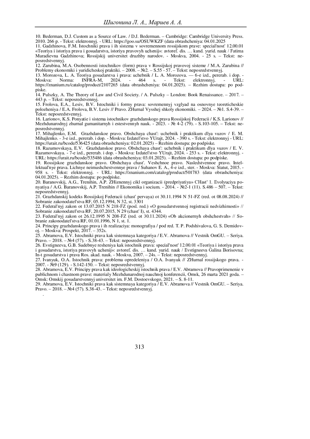 12. Зарубина, М.А. Особенности источников (форм) права в Российской правовой системе / М.А. Зарубина // Проблемы экономики и юридической практики. - 2008. - №2. - С. 55 - 57. - Текст: непосредственный. EDN: JWSJOR