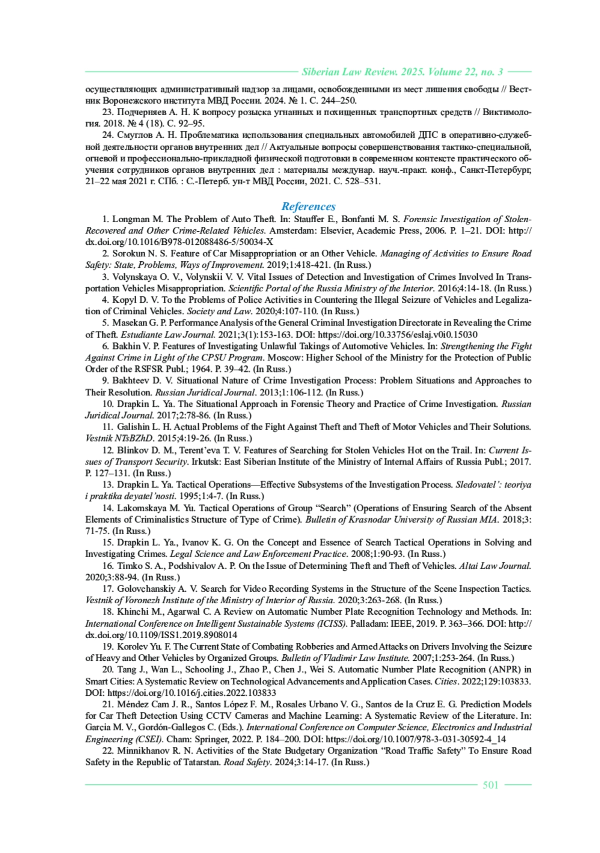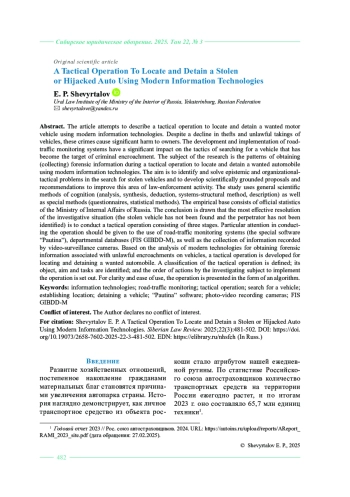 23. Подчерняев А. Н. К вопросу розыска угнанных и похищенных транспортных средств // Виктимология. 2018. № 4 (18). С. 92-95.