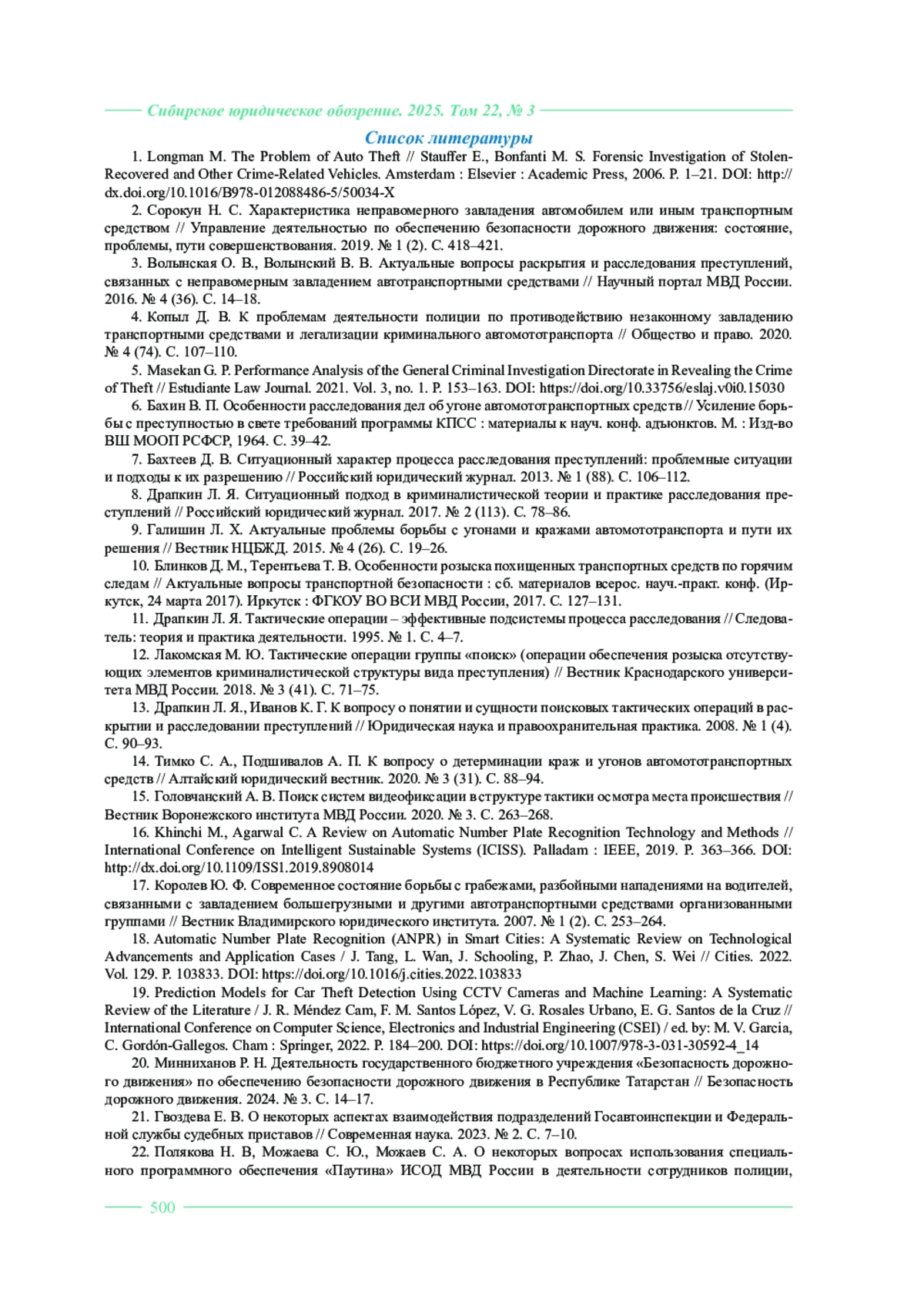 2. Сорокун Н. С. Характеристика неправомерного завладения автомобилем или иным транспортным средством // Управление деятельностью по обеспечению безопасности дорожного движения: состояние, проблемы, пути совершенствования. 2019. № 1 (2). С. 418-421.