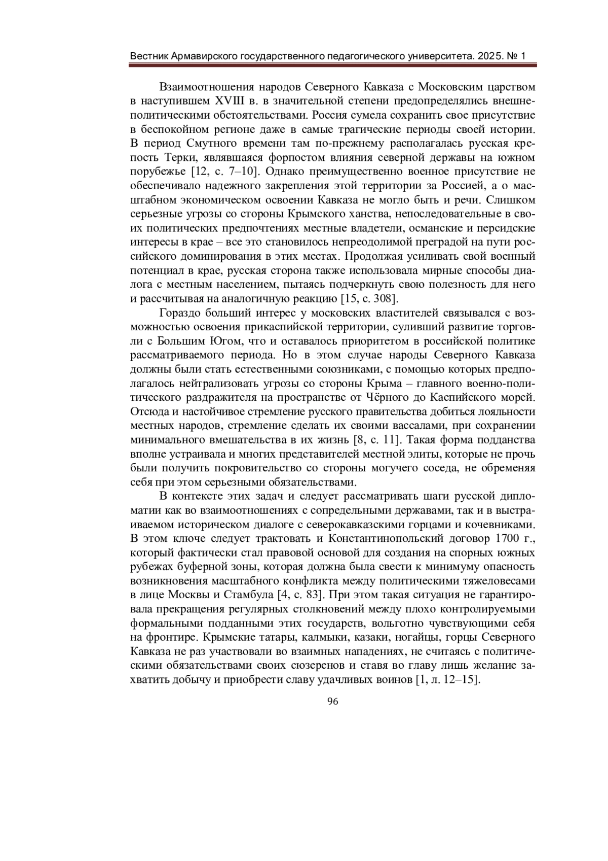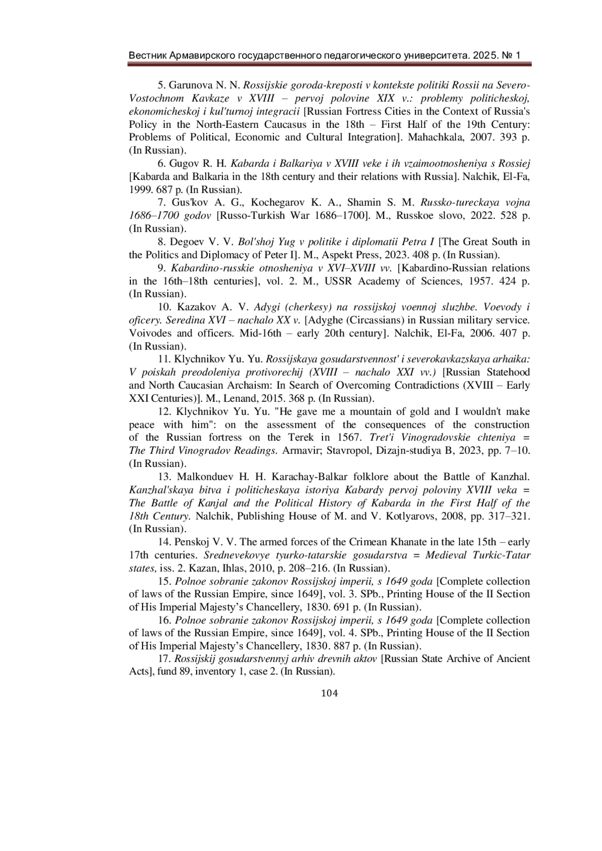 12. Клычников, Ю. Ю. “Он мне давай гору золоту и мне с ним не миривитца”: к оценке последствий возведения русской крепости на Тереке в 1567 году / Ю. Ю. Клычников. - Текст: непосредственный // Третьи Виноградовские чтения: материалы Международной научно-практической конференции (г. Армавир, 5 апреля 2023 г.). - Армавир; Ставрополь: Дизайн-студия Б, 2023. - С. 7-10.