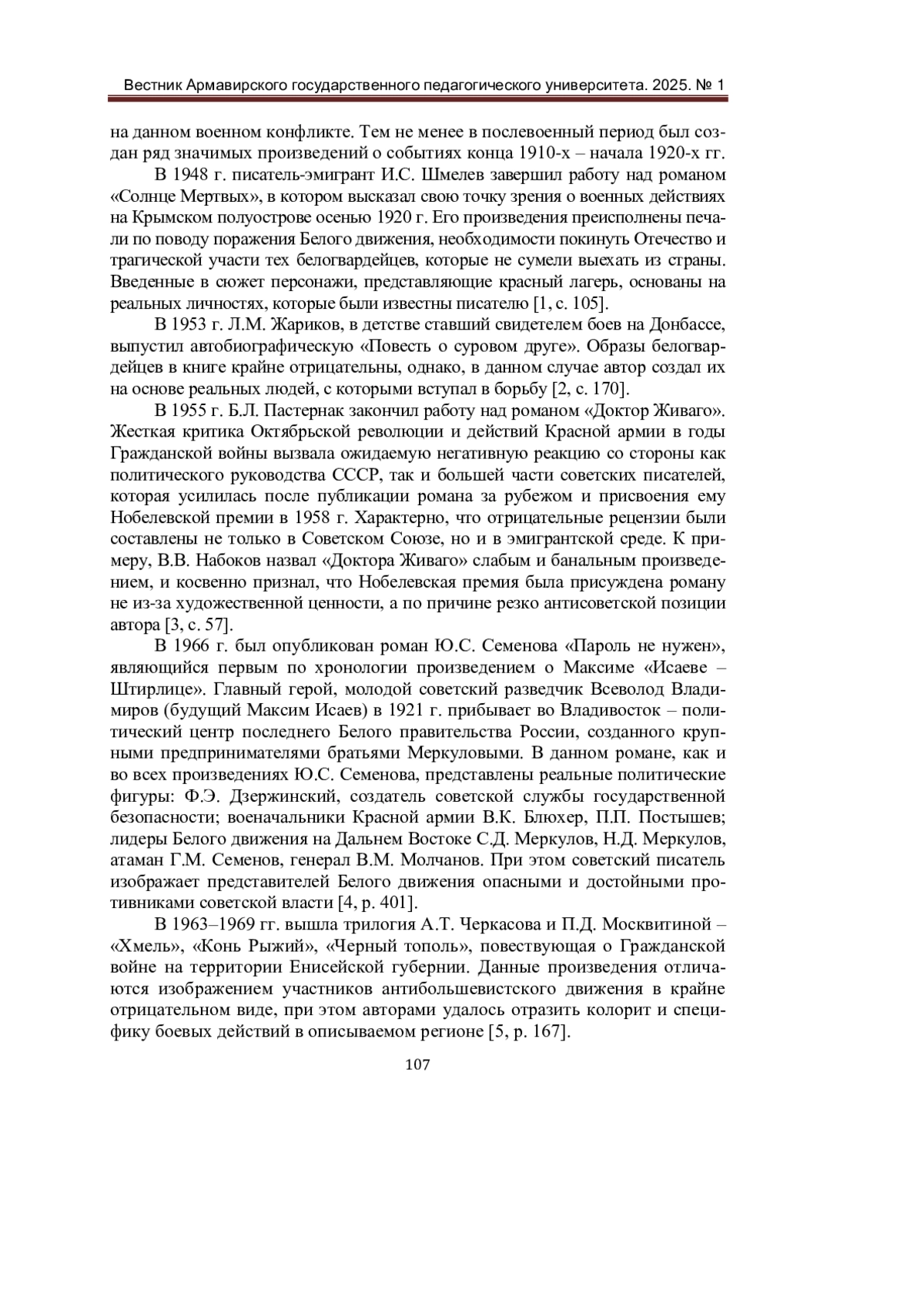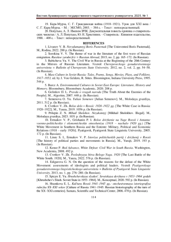 2. Сорокина, В. В. Тема войны в литературе первой волны русской эмиграции / В. В. Сорокина. - Текст: непосредственный // Русское зарубежье. - 2015. - № 2. - С. 165-172.