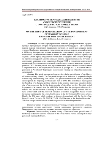 В статье предпринимается попытка усовершенствовать существующую периодизацию истории суворовских военных училищ (далее - СВУ). Первый период (период становления) предлагается начинать от самой идеи создания таких училищ. Наибольшее внимание в статье уделяется второму периоду, который начался в 1956 году. Он проходил на фоне меняющейся политической ситуации в стране и масштабных сокращений численности армии, а также падения престижа офицерской службы. Третий период предлагается отсчитывать с середины 1960-х годов. В это время престиж офицерской службы оставался низким, а продолжительность обучения в суворовских училищах резко сократилась. Распад СССР и становление современной независимой России стали естественной точкой отсчета нового, четвертого периода в развитии СВУ. Наконец, пятый этап, продолжающийся до настоящего момента, связан с закреплением в ст. 86 Федерального закона от 29 декабря 2012 г. № 273-ФЗ «Об образовании в Российской Федерации» суворовских училищ как общеобразовательных организаций.