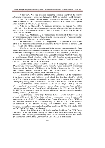 11. Постановление Совета Министров СССР от 8 сентября 1980 г. № 769 “О суворовских военных, нахимовских военно-морских и военно-музыкальных училищах”. - URL: https://www.libussr.ru/doc_ussr/usr_10456.htm (дата обращения: 03.12.2024). - Текст: электронный.